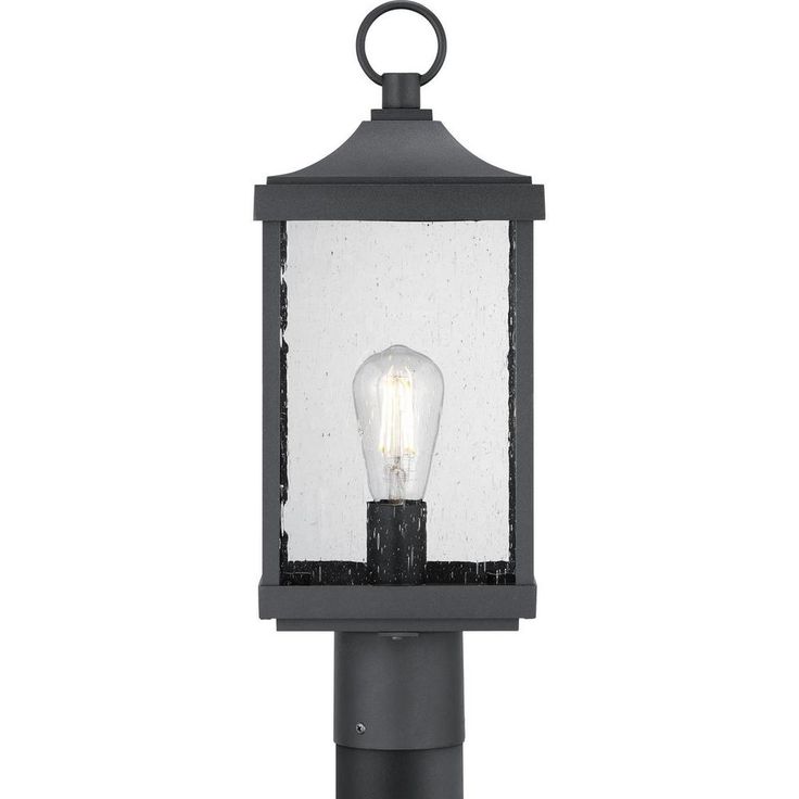 Park Court 1-Light Textured Black Outdoor Post Lantern with Clear Seeded Glass