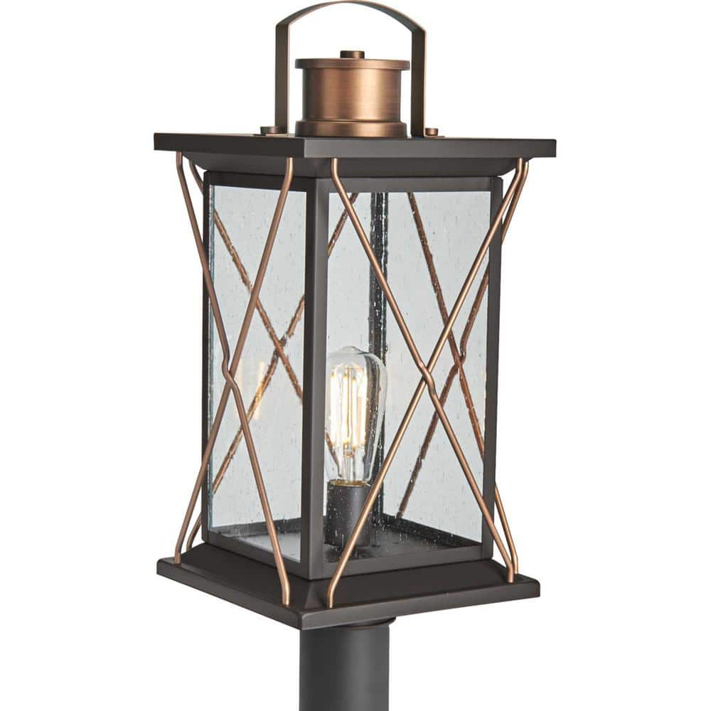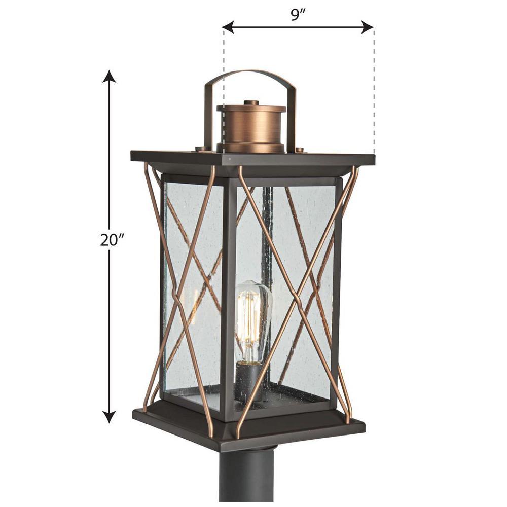 Progress Lighting Barlowe 1-Light Antique Bronze 4x4 Deck Post Lantern with Clear Seeded Glass