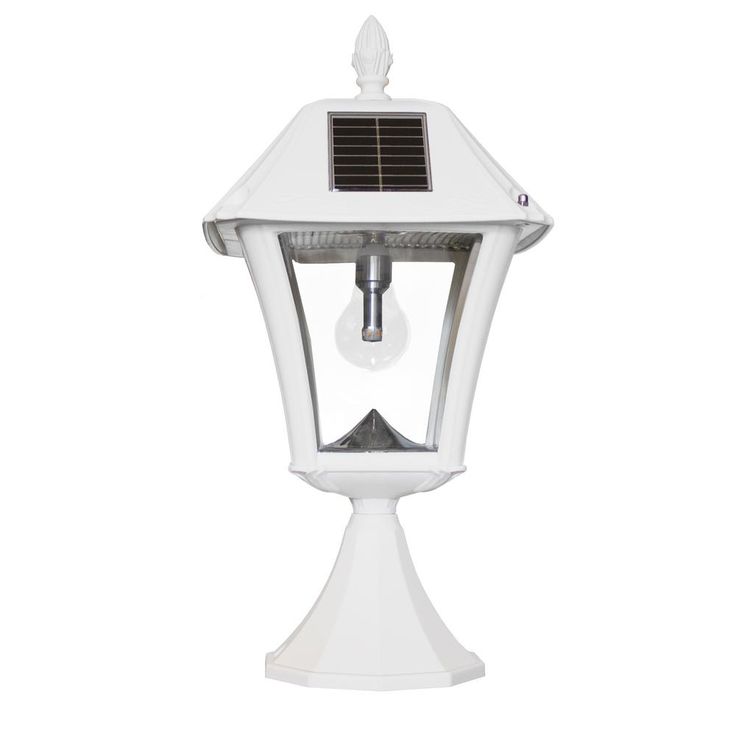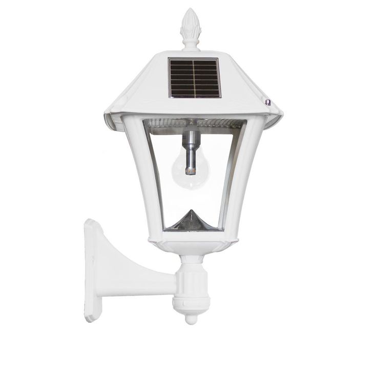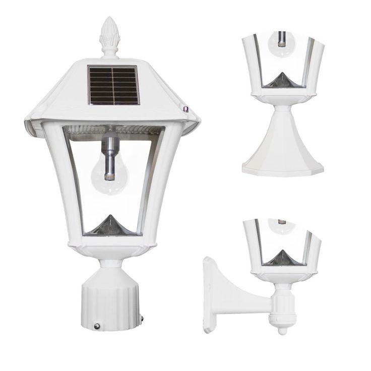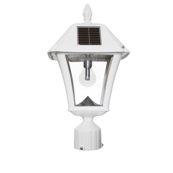 Enjoy a bright, beautiful illumination easily without the hassle of hardwired installation. The Gama Sonic Baytown II Bulb Outdoor Solar Post Light/Wall Lantern now features our new utility patented GS Solar LED light bulb and is the perfect energy-saving and money-saving replacement for post-mounted and wall-mounted electric or gas-powered outdoor lighting. Made from heavy-duty, weather-resistant resin, this fixture comes with all the hardware needed for 3 different modes of installation: as an outdoor wall sconce or flat surfaces, such as pillars or columns or at the top of a 3 in. Dia lamp post. Just set it up in the configuration you prefer and the sun does the rest. Designed for dusk-to-dawn operation on a full charge, this fixture charges when sunlight hits the 4 integrated solar panels, which are protected by weather-resistant tempered glass and a cleanable plastic shield. At dusk, 11 warm-white LEDs turn on automatically and shine at 130 Lumens in a maximum illumination similar to the 360° light spread of a traditional incandescent bulb. Gama Sonic's patented cone reflector also helps disperse an abundance of shine.