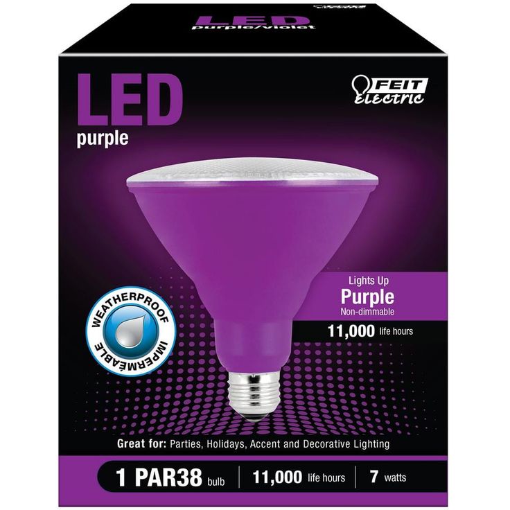 Regular price $41.69This PAR38 colored LED is great for any festive, holiday or special occasion and replaces any 100-Watt incandescent or halogen outdoor colored PAR38 while using only 7-Watt. This Feit Electric 90-Watt Equivalent PAR38 LED is great for any fixture or enclosed recessed can and was designed to be weatherproof. Create the perfect mood for any party, holiday or special occasion. This bulb lasts up to 10,000-hours and will save you money on energy costs throughout the duration of the bulb. This PAR38 weatherproof bulb is ideal for landscape, party and holiday lighting. This PAR38 is mercury free, safe for the environment and energy saving to benefit both you as a consumer and the planet.