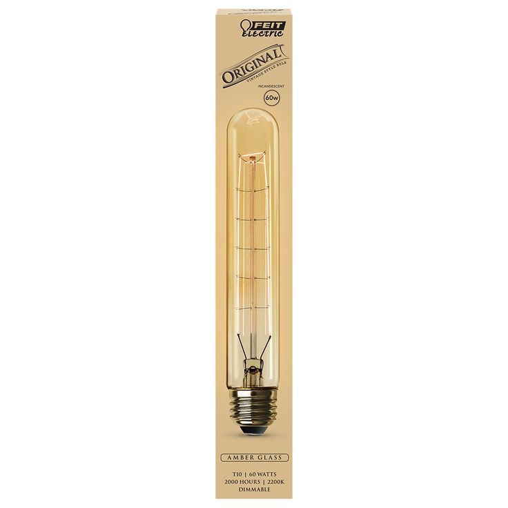 Feit Electric 60W Equivalent T10 Dimmable Incandescent Amber Glass Vintage Edison Large Light Bulb Soft White (4-Pack)