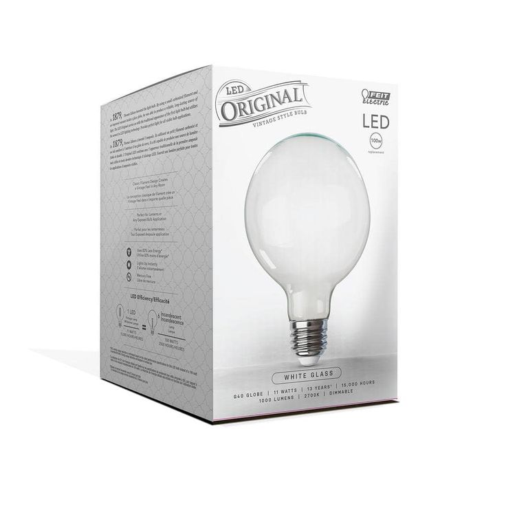 Combine classic style, modern reliability and energy savings with Feit Electric G40 LED 100-Watt Equivalent Soft White (2700K) 8-Straight Filament Light Bulb. Our vintage filament bulbs are made with LED exposed filament and wrapped in a white housing to deliver an elegant antique look and feel. We integrate innovative LED technology with a traditional straight filament, providing a natural lighting experience for those that want the benefits of LED's and the look of a vintage lighting. Filament LED's will last for years and use just a fraction of the energy of an incandescent.