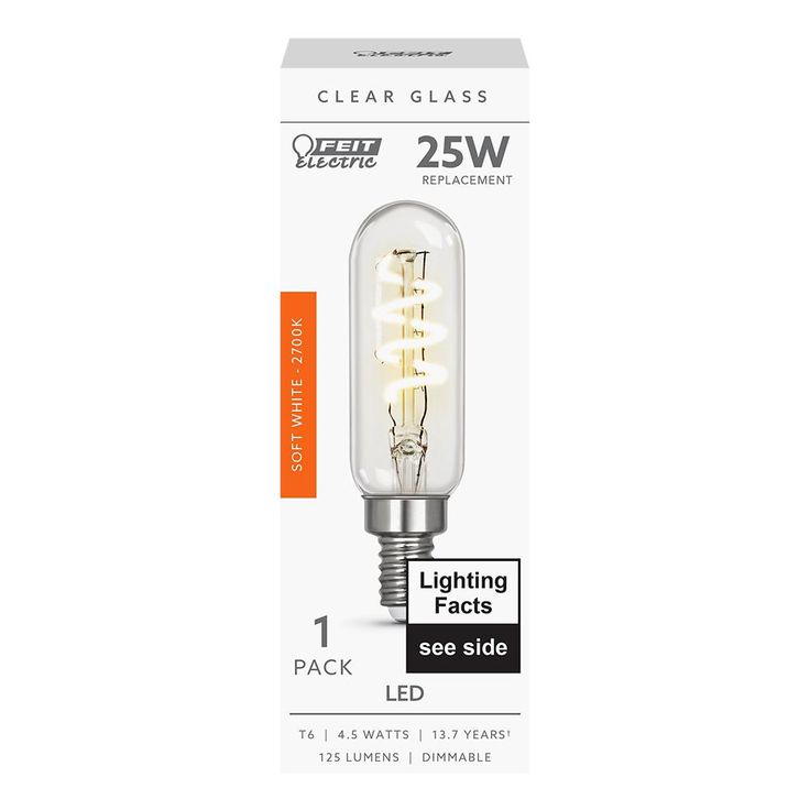 Combine classic style, modern reliability and energy savings with Feit Electric T6 LED 25-Watt Equivalent Soft White (2700K) Spiral Filament Light Bulb. Our vintage filament bulbs are made with LED exposed filament and wrapped in a clear housing to deliver an elegant antique look and feel. We integrate innovative LED technology with a unique spiral filament, providing a natural lighting experience for those that want the benefits of LED's and the look of a vintage lighting. Filament LED's will last for years and use just a fraction of the energy of an incandescent.