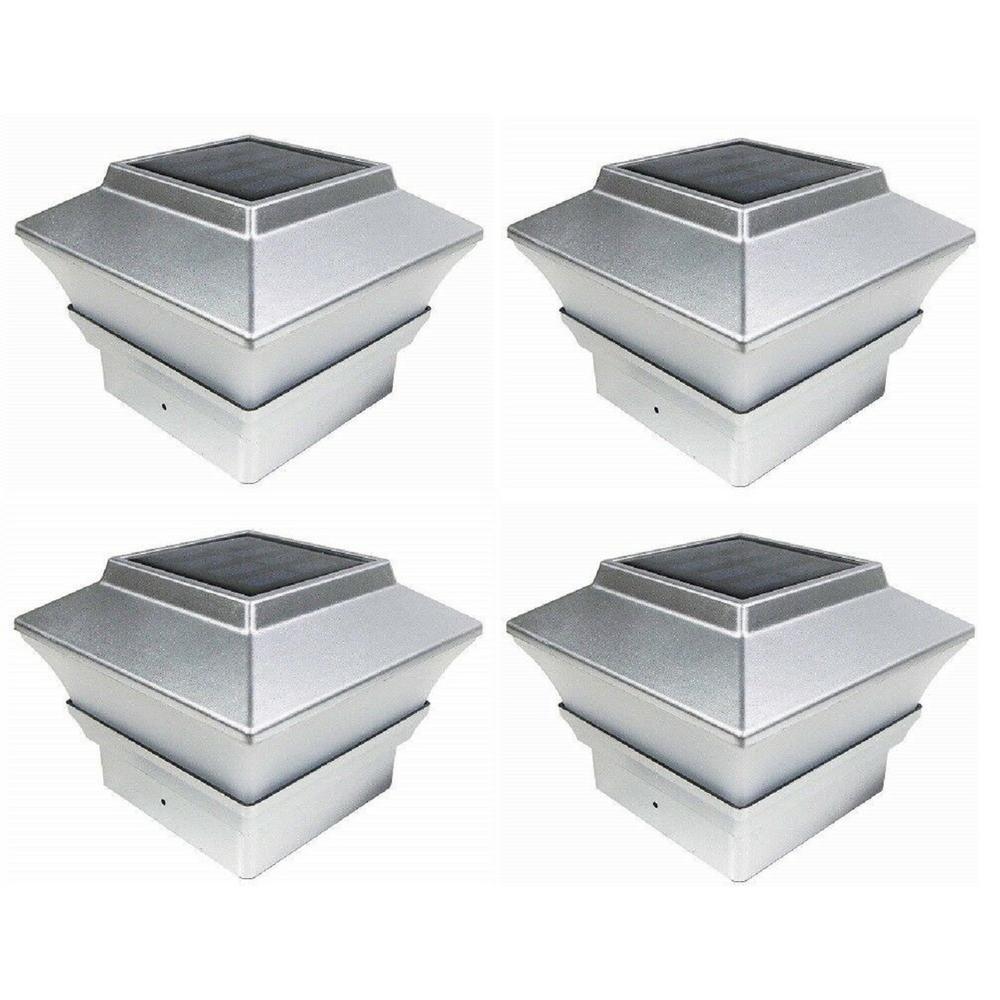 Relightable Solar 4 in. x 4 in. Silver Vinyl Outdoor Post Cap Deck Lights (4-Pack)