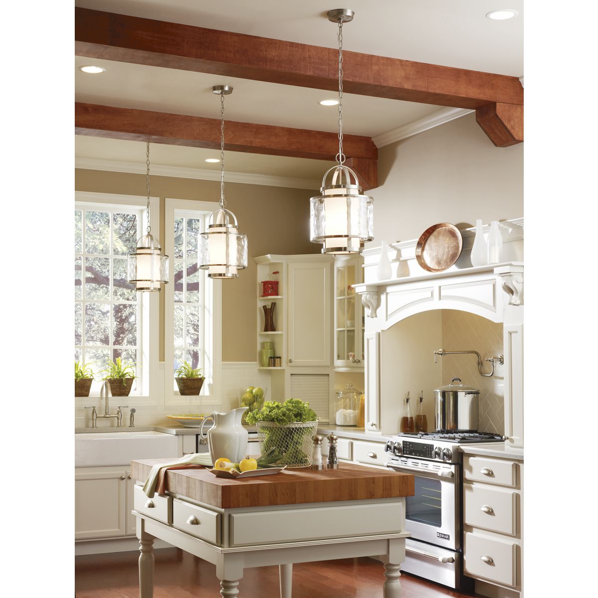 Bay Court’s layered drum silhouette and brushed nickel arches echo the romance of a lantern at sea, casting a serene, diffused glow. The distressed clear glass wraps the inner etched diffuser with rippling texture—an artful detail that feels both tailored and effortless. Hang a pair above a kitchen island with matte ceramics and honed stone to let the sparkle play against natural textures. It’s a refined statement that anchors a room with quiet, luxurious confidence.