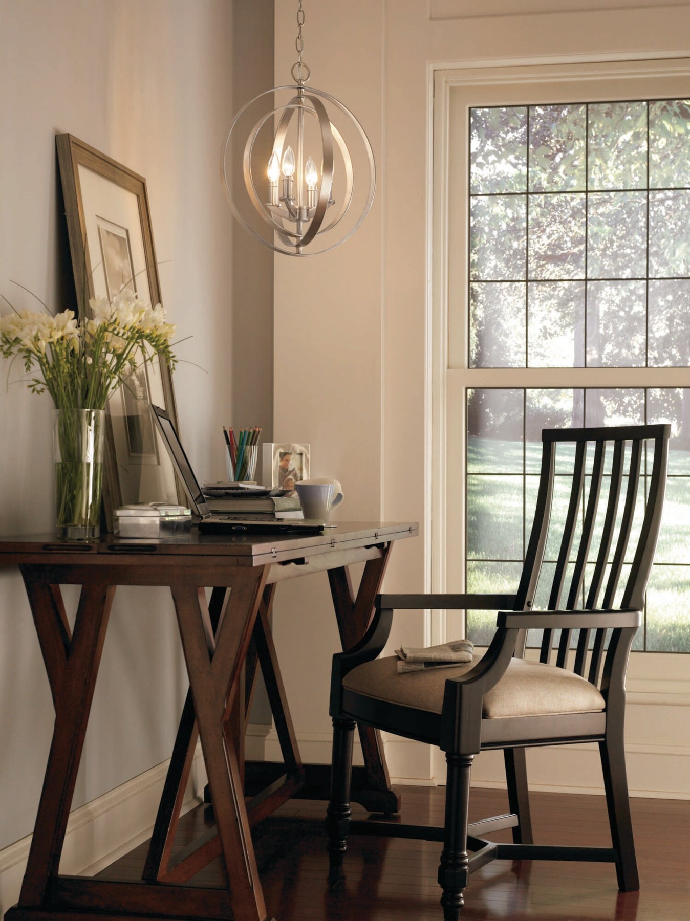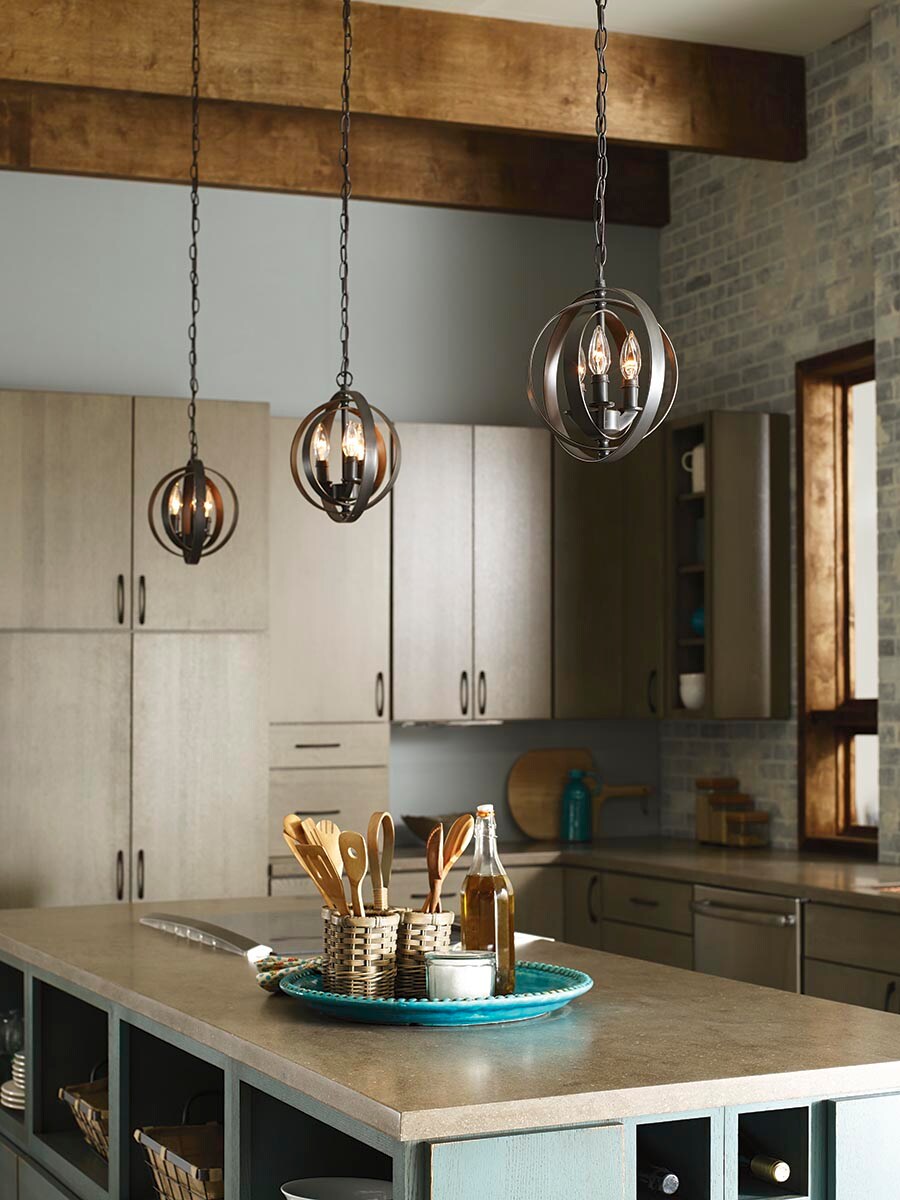 A transitional orb pendant from Progress Lighting’s Equinox collection, featuring concentric pivoting steel rings in an Antique Bronze finish. The 3-light candelabra design delivers elegant illumination for kitchens, dining rooms, and foyers with adjustable hanging height via a 72-inch chain.