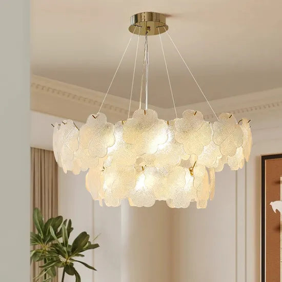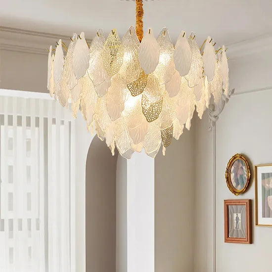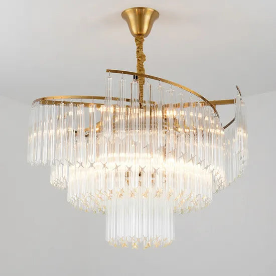 Transform any conventional space into a beacon of luxury with this Gold LED Chandelier. Its masterful blend of glass and iron paints a true spectacle with every shimmer of light that dances along its golden frame. Hang it proudly above a grand dining table or in the heart of a bustling hotel lobby to inject elegance and sophistication. This chandelier isn't just a lighting fixture—it's a statement piece for those who cherish opulent aesthetics in their living spaces.