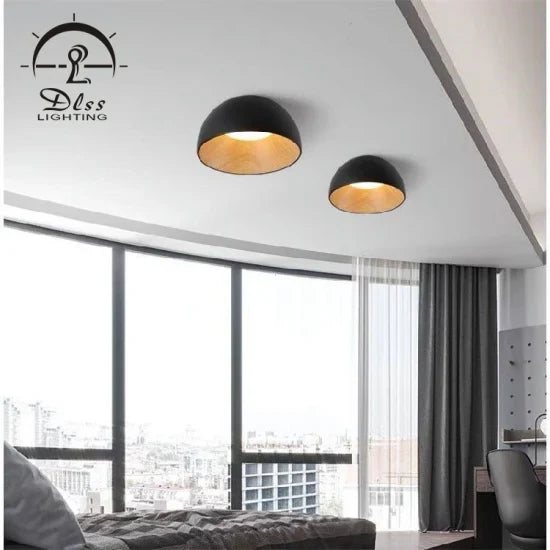 Illuminate your space with the Bowl-Shaped Modern LED Ceiling Light, perfect for contemporary interiors. Crafted from durable iron and aluminum, its sleek design pairs outside black with an inside wood color finish. Ideal for various settings such as living rooms, bedrooms, and cafes, this lamp promises style and functionality without compromising on energy efficiency.