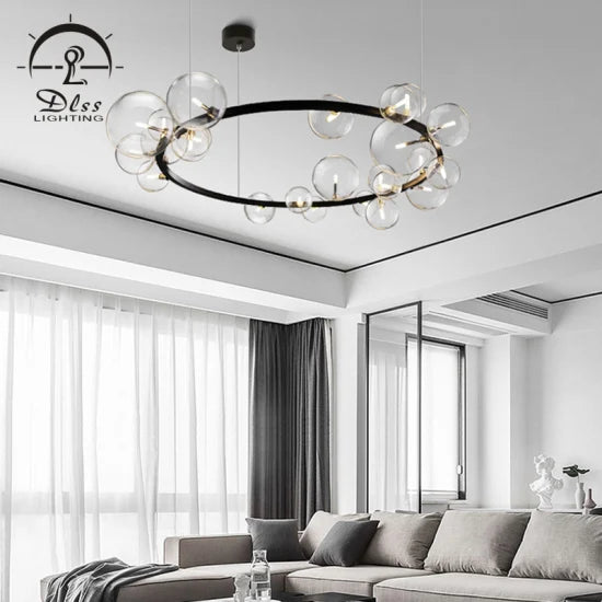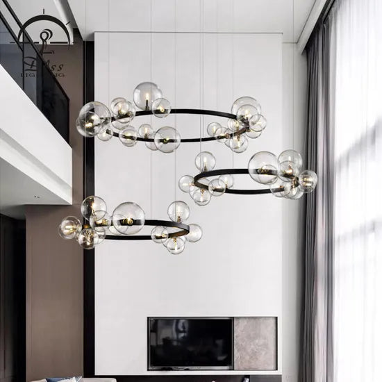 The Artistic Metal and Glass Hanging Lamp transforms any space with its sophisticated charm, illuminating your surroundings with a harmonious blend of form and function. The juxtaposition of sleek black metal against clear glass creates a statement piece that draws the eye and complements modern interior aesthetics. Perfect for suspending over a dining table or as a centerpiece in a well-appointed living room, this lamp not only lights your space but elevates it to new heights of luxurious elegance.