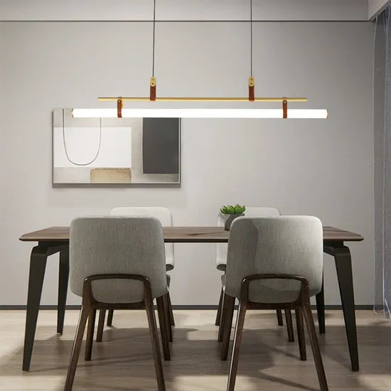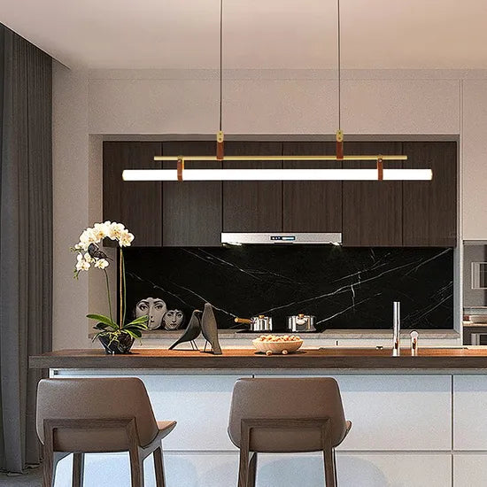 Illuminate your living space with this stunning Modern LED Acrylic Chandelier by DLSS Lighting. Featuring an elegant blend of aluminum, leather, and acrylic materials, this pendant lamp boasts a sleek black and gold design that's perfect for any modern home. With its energy-efficient LED technology, it offers brilliant illumination while saving on electricity costs.