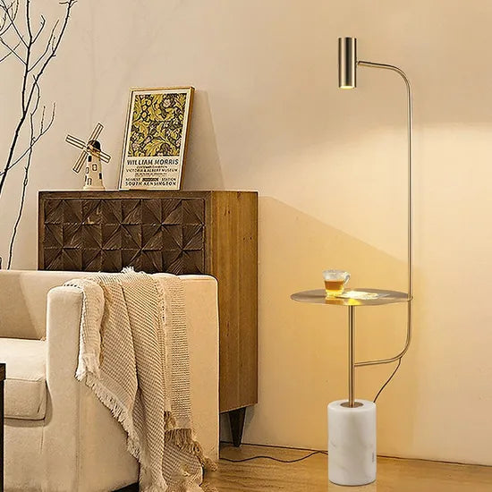 Illuminate your living space with this modern floor lamp, featuring a sleek black and gold steel design complemented by a robust marble base. Ideal for various settings such as living rooms, bedrooms, or hotels, it combines elegance with functionality, providing ambient lighting with included GU10 LED bulbs. Elevate any room's decor with its sophisticated and versatile style.