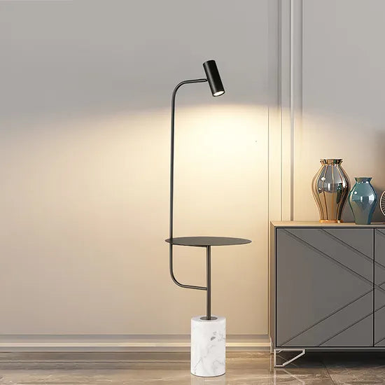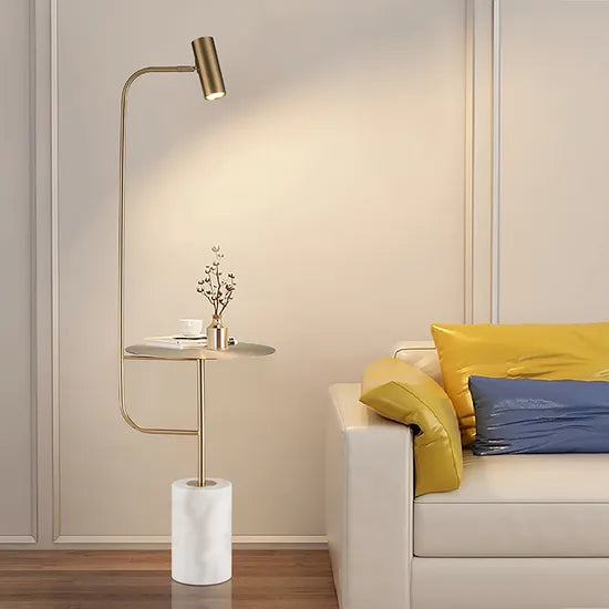 Introducing a floor lamp that artfully melds form and function to transform your interiors into a realm of refined sophistication. Its sleek black and gold finish radiates a contemporary flair, while the marble base invites a touch of classic luxury. Imagine it standing proudly in your living room corner or beside your reading chair, casting a warmly modern glow. More than just illumination, this piece is a testament to thoughtful design, essential for those curating a sanctuary of stylish living.