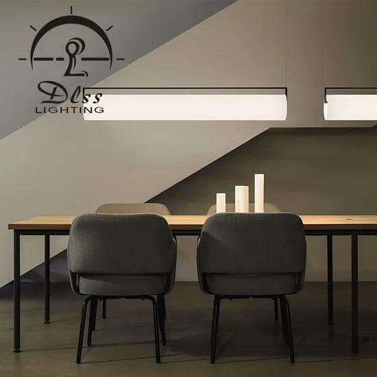 Illuminate your space with the sleek LED Tube-Shaped Modern Pendant Chandelier by DLSS Lighting. Crafted from durable iron and acrylic, this contemporary light fixture offers a sophisticated aesthetic and energy-efficient LED technology, perfect for enhancing both public and private spaces like dining rooms and boutiques.