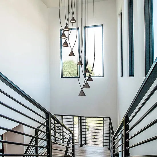 Illuminate your space with elegance and modern flair using this New Design LED Pendant Chandelier. Perfect for hotels, homes, and stylish interiors, its iron and aluminum construction offers both durability and a sleek aesthetic to complement any room's decor. Its integrated LED lights provide efficient, warm illumination with a design that stands out.