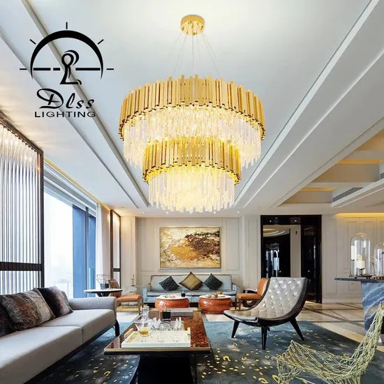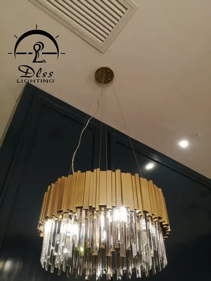 This chandelier is more than just a light fixture; it's a beacon of elegance and sophistication. Its stainless steel frame and crystal embellishments create a glowing centerpiece that transforms any room into a luxurious haven. Imagine its golden hues casting a warm glow over a grand dining table or a plush living room. Pair it with minimalist décor for a striking contrast or bold art pieces for a classic glamour effect. This chandelier is the epitome of chic style, a must-have for those who appreciate the finer things in life.
