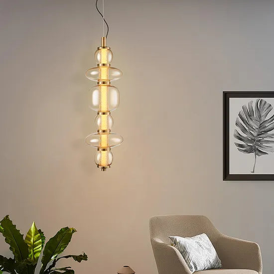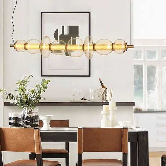 Transform any room into a haven of modernity with this exquisite pendant lamp. The Anbersmoky glass paired with the rich brass hue casts a warm and inviting glow, perfect for any contemporary interior. Imagine it suspended above a sleek dining table, or as a stunning focal point in a minimalist living room. This chandelier isn't just light; it's a statement of sleek sophistication, essential for luxurious living.