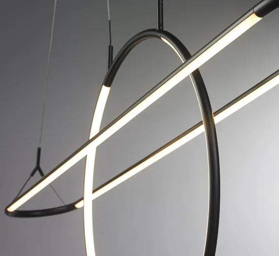 DLSS Lighting Long Indoor LED Hanging Round Ring Metal Chandelier