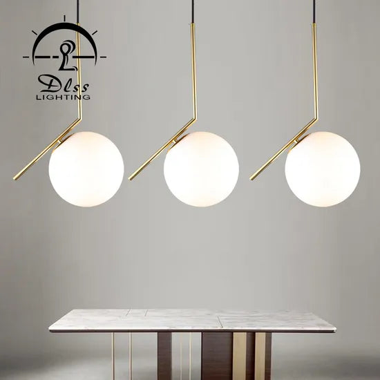 DLSS Lighting Modern Brass and White Glass Ball Hotel Project Pendant Lamp/Chandelier