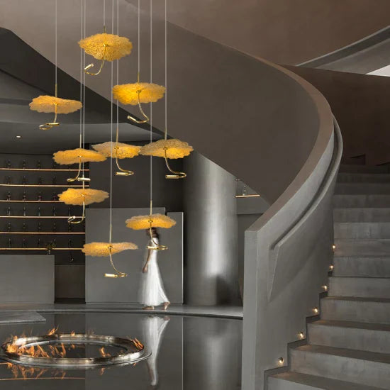 Step into a realm of botanical beauty with the DLSS LED Flower Chandelier, where art meets illumination. This chandelier's gold blossom design casts an enchanting aura that dances through spaces, creating an instant focal point. Hang it low over a dining table to captivate guests or let it bloom in a grand foyer. It's more than lighting; it's an artful ode to luxury.