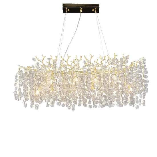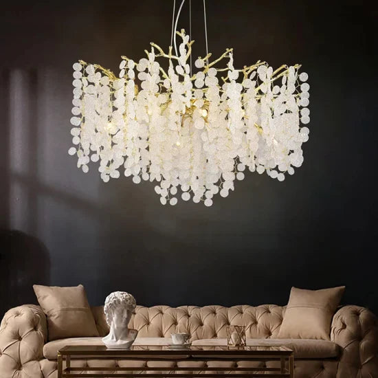 Transforming spaces into luxurious sanctuaries, the DLSS Modern LED Chandelier does more than light a room—it elevates it. Its golden hue paired with a glassy glow beckons the spirit of contemporary splendor. Hang it above a sophisticated dining table, where its beauty can shine as easily on candlelit meals as it can on grand soirées, projecting a warm, opulent light. This chandelier is not just a decor piece; it's an emblem of refined living.