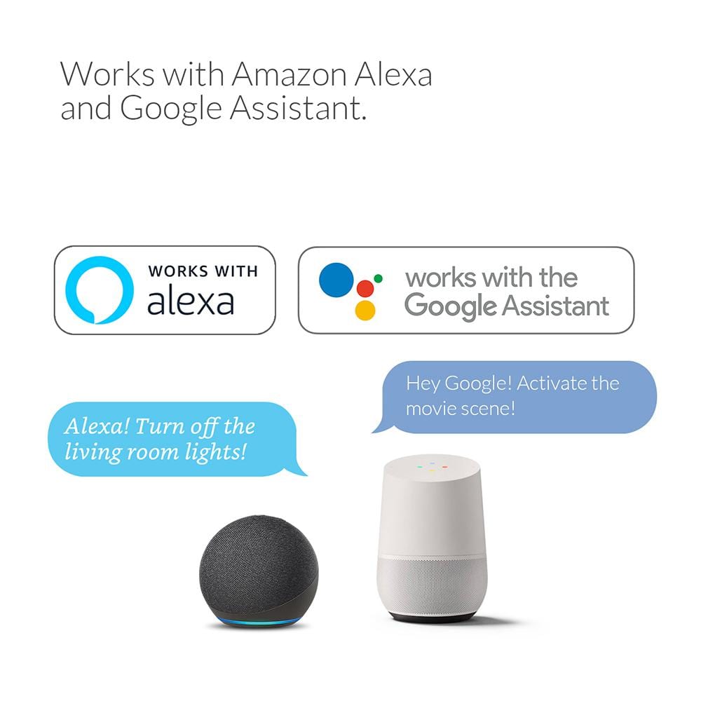 • Wide Compatibility: Works with Alexa and Google Assistant through supported hubs