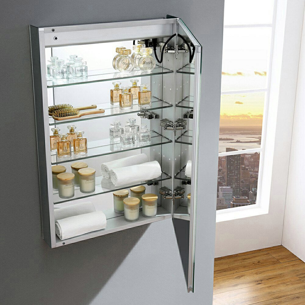 Fresca Spazio 24-in x 36-in Lighted LED Fog Free Surface/Recessed Mount LED Lighting Mirror- Right Mirrored Soft Close Medicine Cabinet with Outlet