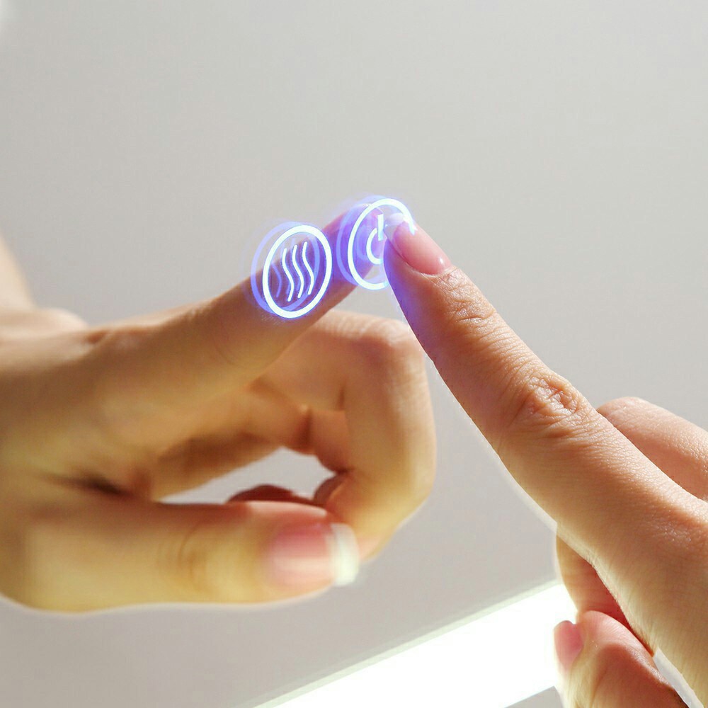 A: The defogger operates with a simple touch switch, keeping your mirror clear and usable immediately after a shower.