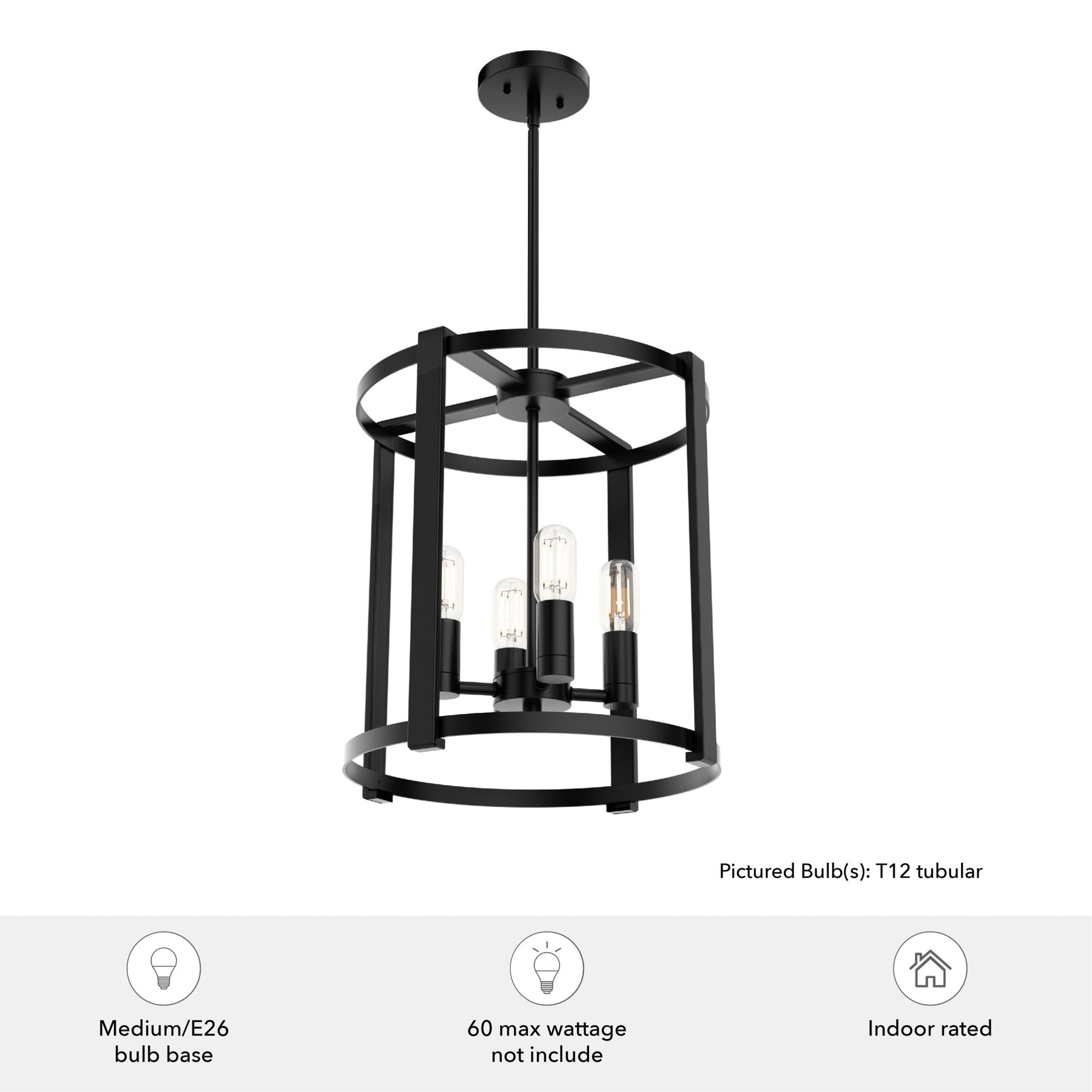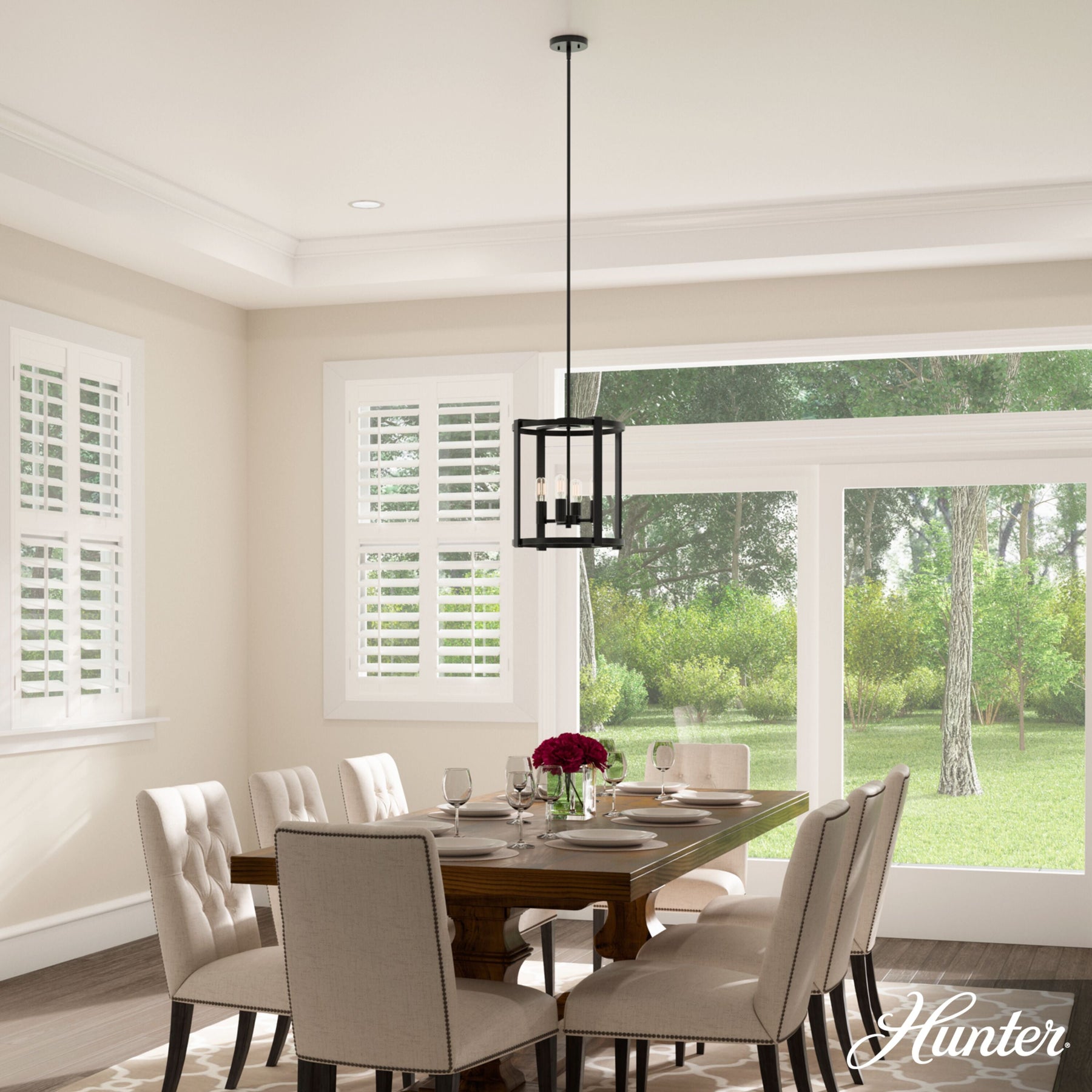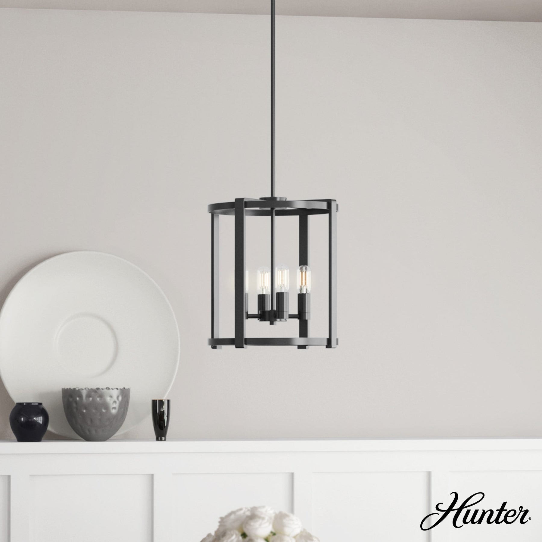 Elevate your space with the Hunter Astwood 4-Light Matte Black LED Chandelier. Its transitional design features a striking matte black finish and a drum-shaped cage that seamlessly blends modern and classic aesthetics, suitable for various room styles. Effortlessly transform your indoor settings with this sophisticated and adaptable chandelier.