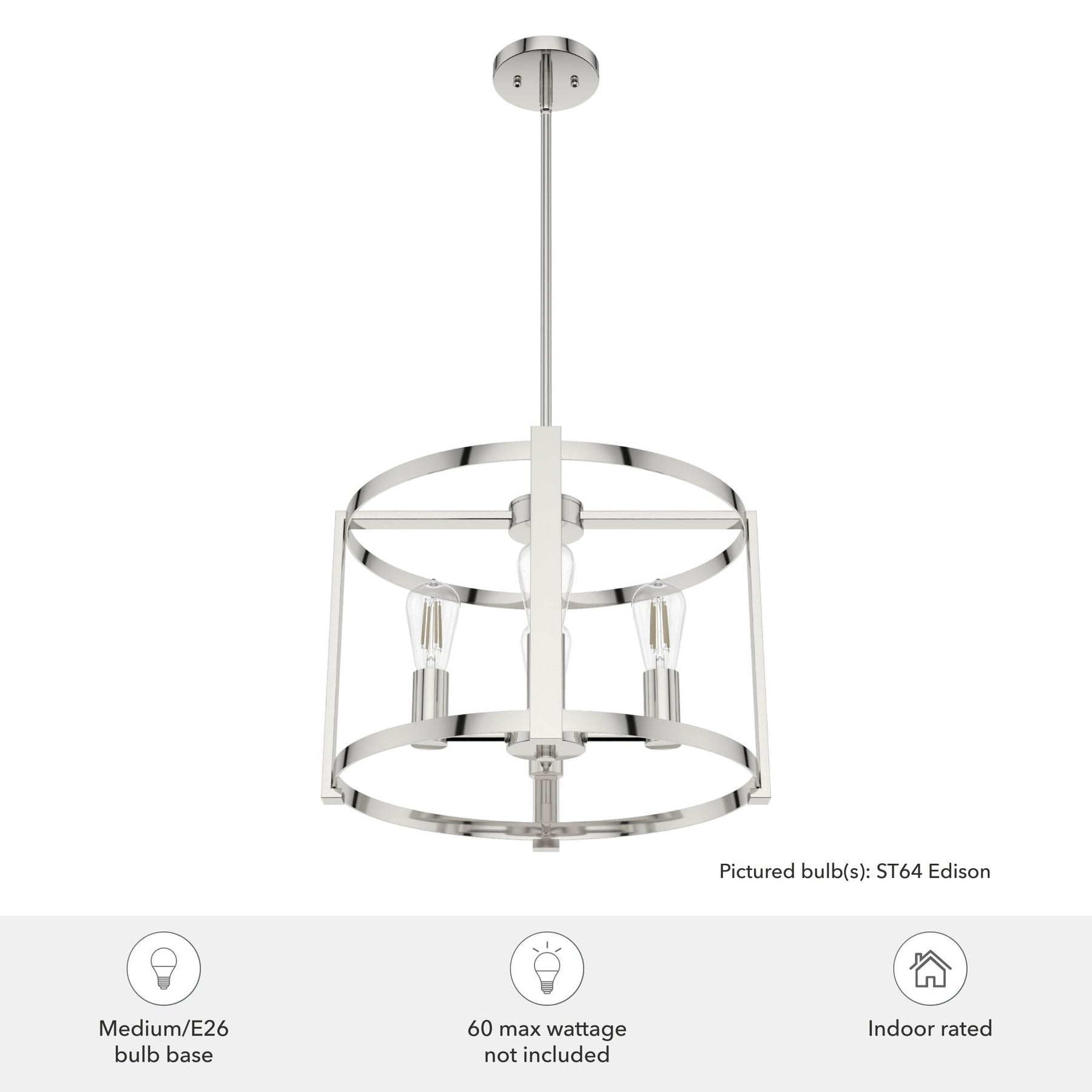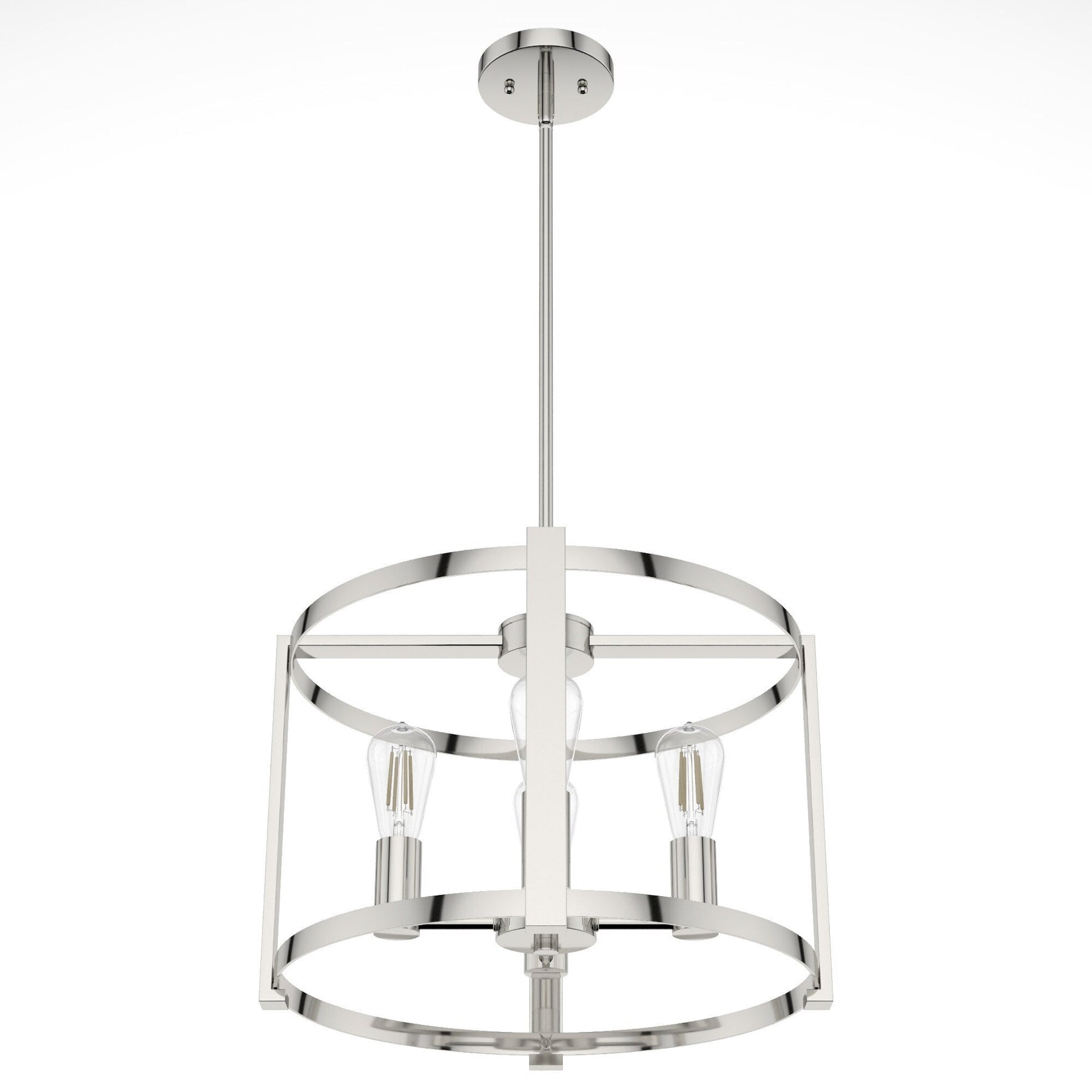 Illuminate your living space with elegance using the Hunter Astwood 4-Light Polished Nickel Chandelier. This modern fixture features a sleek polished nickel finish paired with a contemporary bare bulb design, perfect for adding a touch of sophistication to kitchens, dining rooms, or living areas. Designed for versatility and ease, it offers adjustable hanging lengths and coordinates beautifully with other pieces from the Astwood collection.