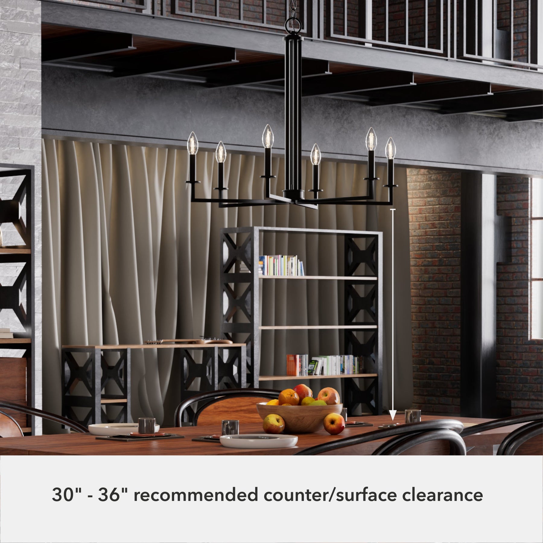 Illuminate your space with the Hunter Bearden 6-Light Chandelier, blending transitional elegance with a durable satin black finish. Engineered by the reputable Hunter brand, this striking chandelier boasts high-quality metal construction and flexibility to suit a range of ceiling heights.