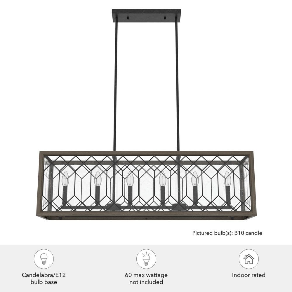 Hunter Chevron 6-Light Rustic Iron Billiard Chandelier with Clear Seeded Glass Shade