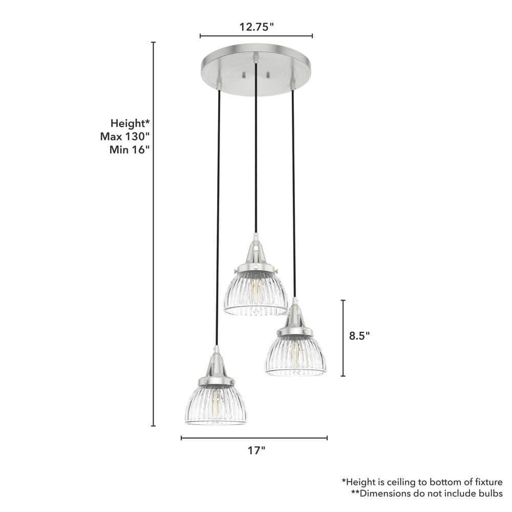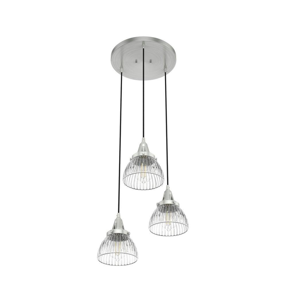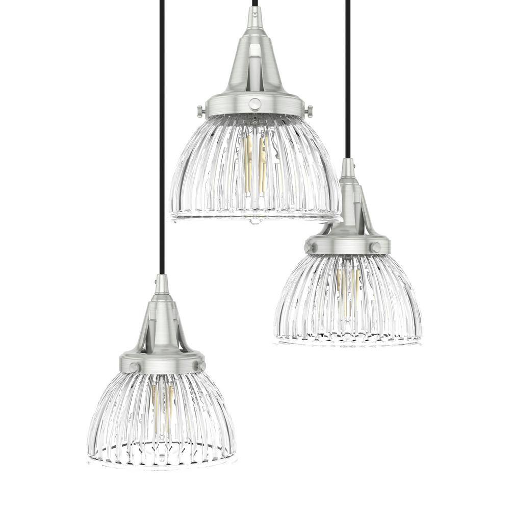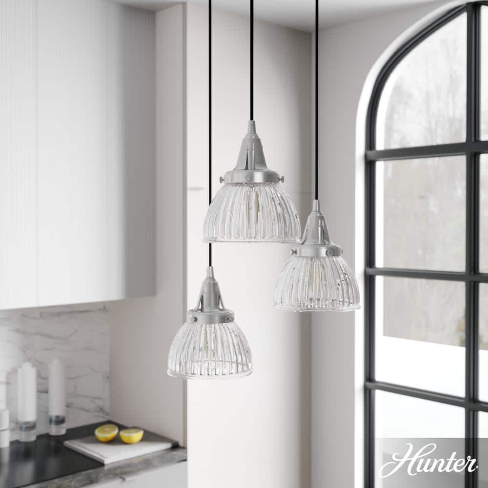 Hunter Cypress Grove 3 Light Brushed Nickel Waterfall Chandelier with Clear Holophane Glass Shades Kitchen Light