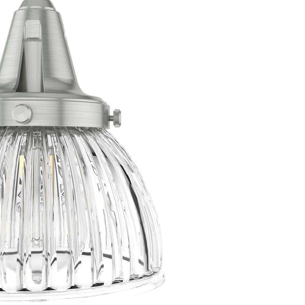 • Premium Design: Stylish brushed nickel finish with clear holophane glass shading.