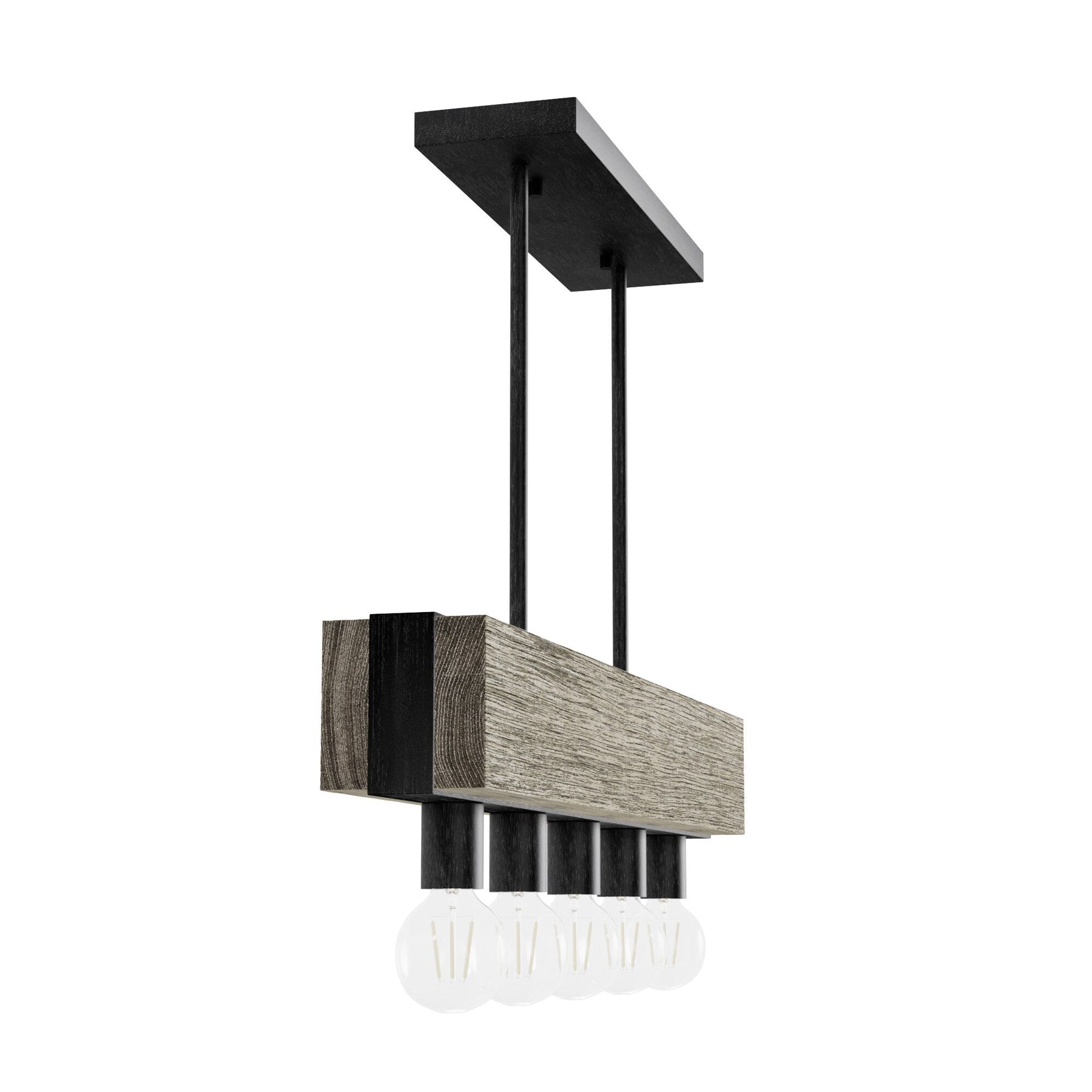 A: The Donelson chandelier uses five E26-base light bulbs, with G25 Globe bulbs recommended, each at a maximum of 60-Watts or the LED equivalent. Note that bulbs are not included.