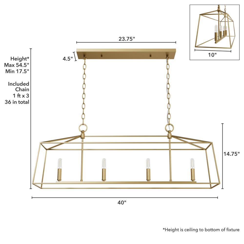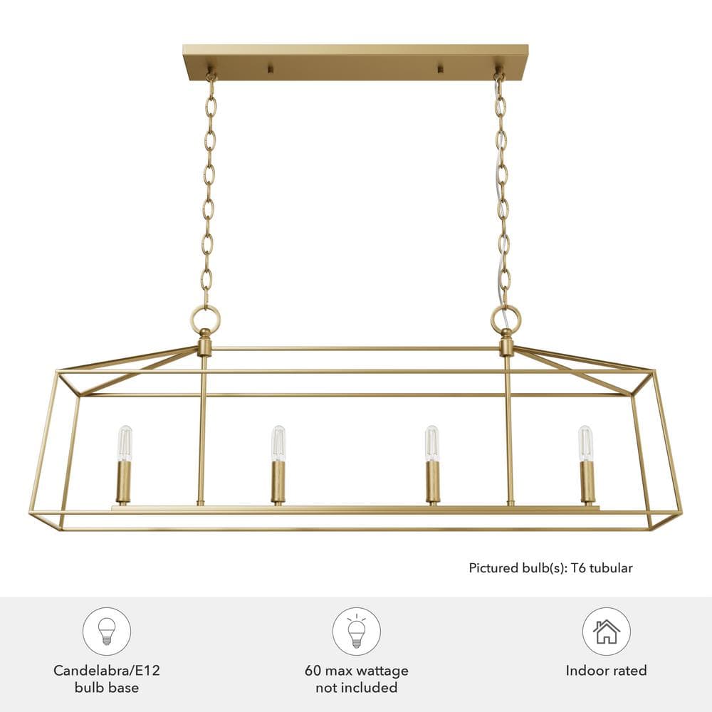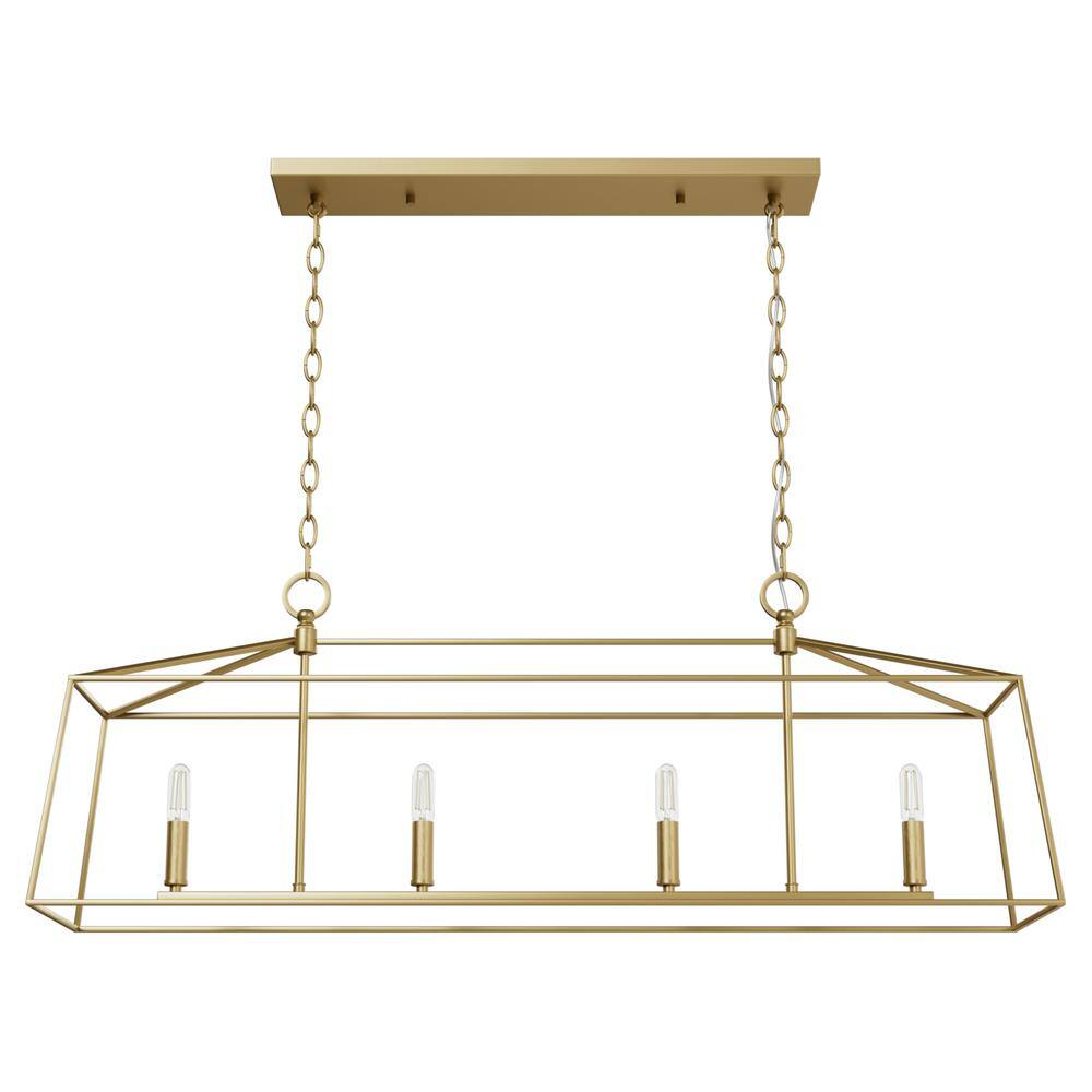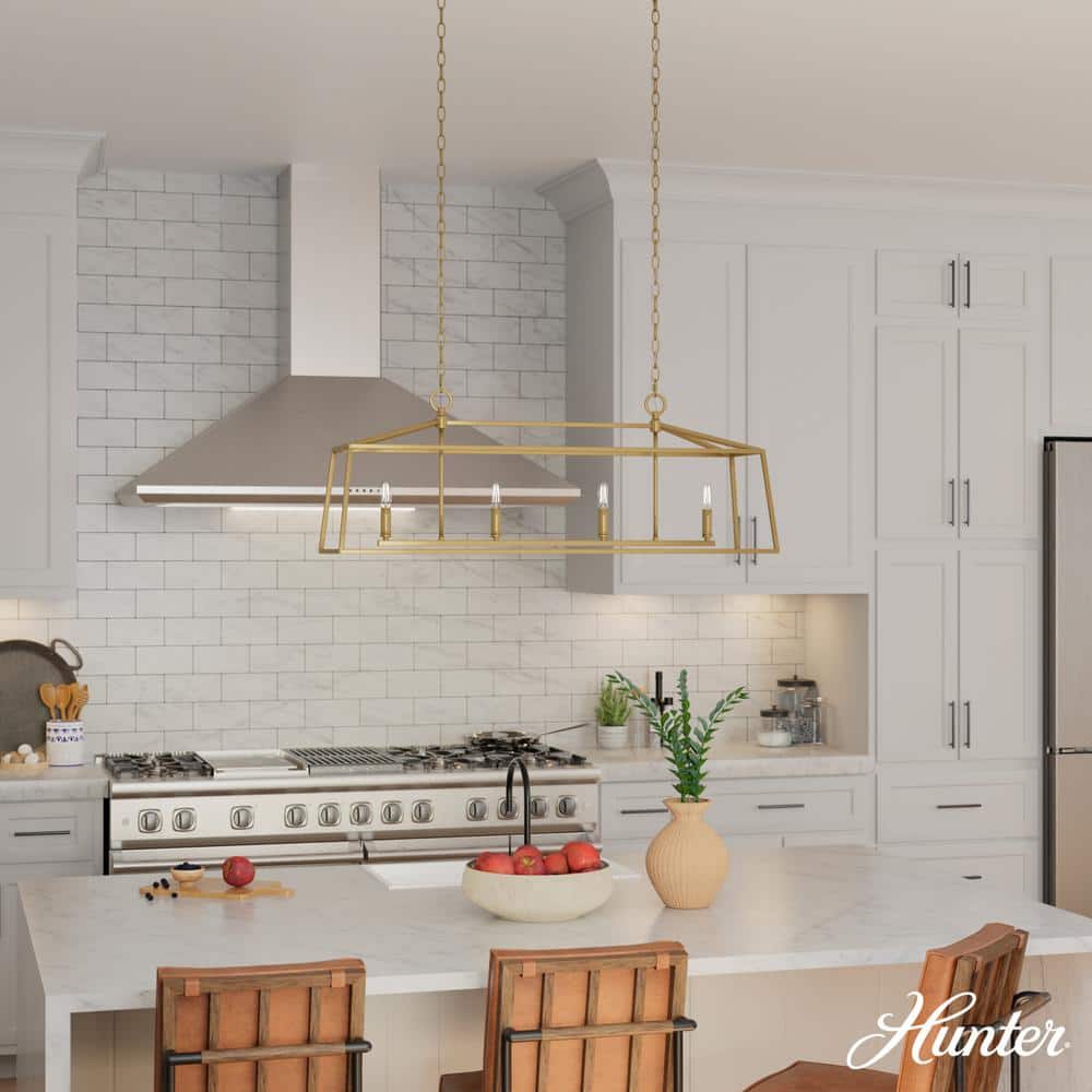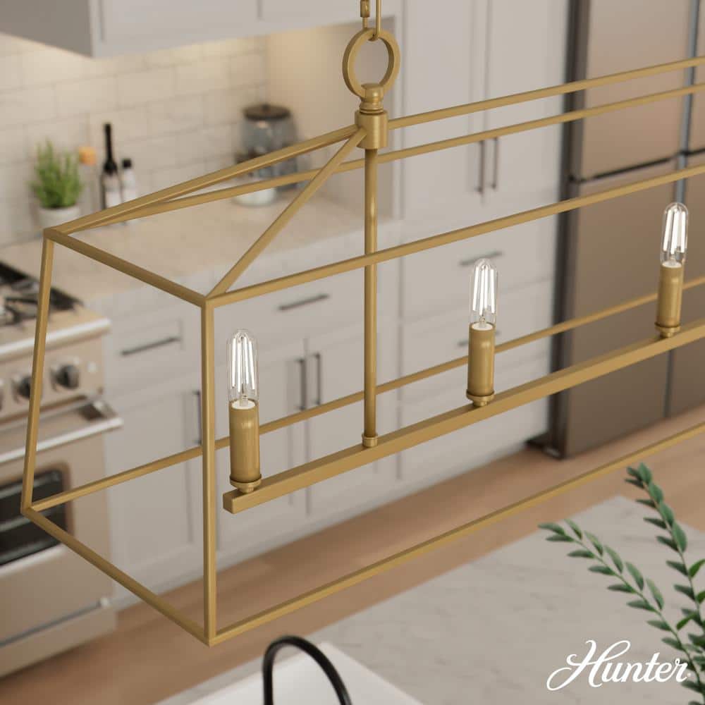 Hunter Fair Oaks 4-Light Luxe Gold Lantern Linear Chandelier for Kitchen Island with No Bulbs Included