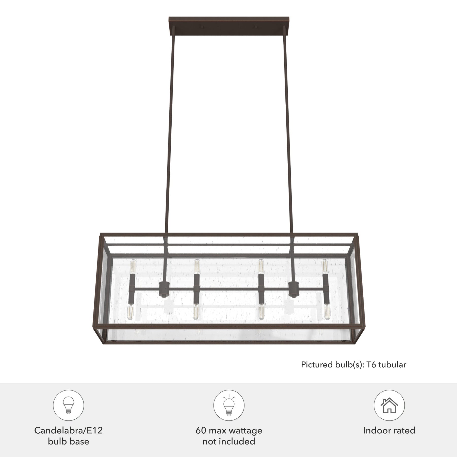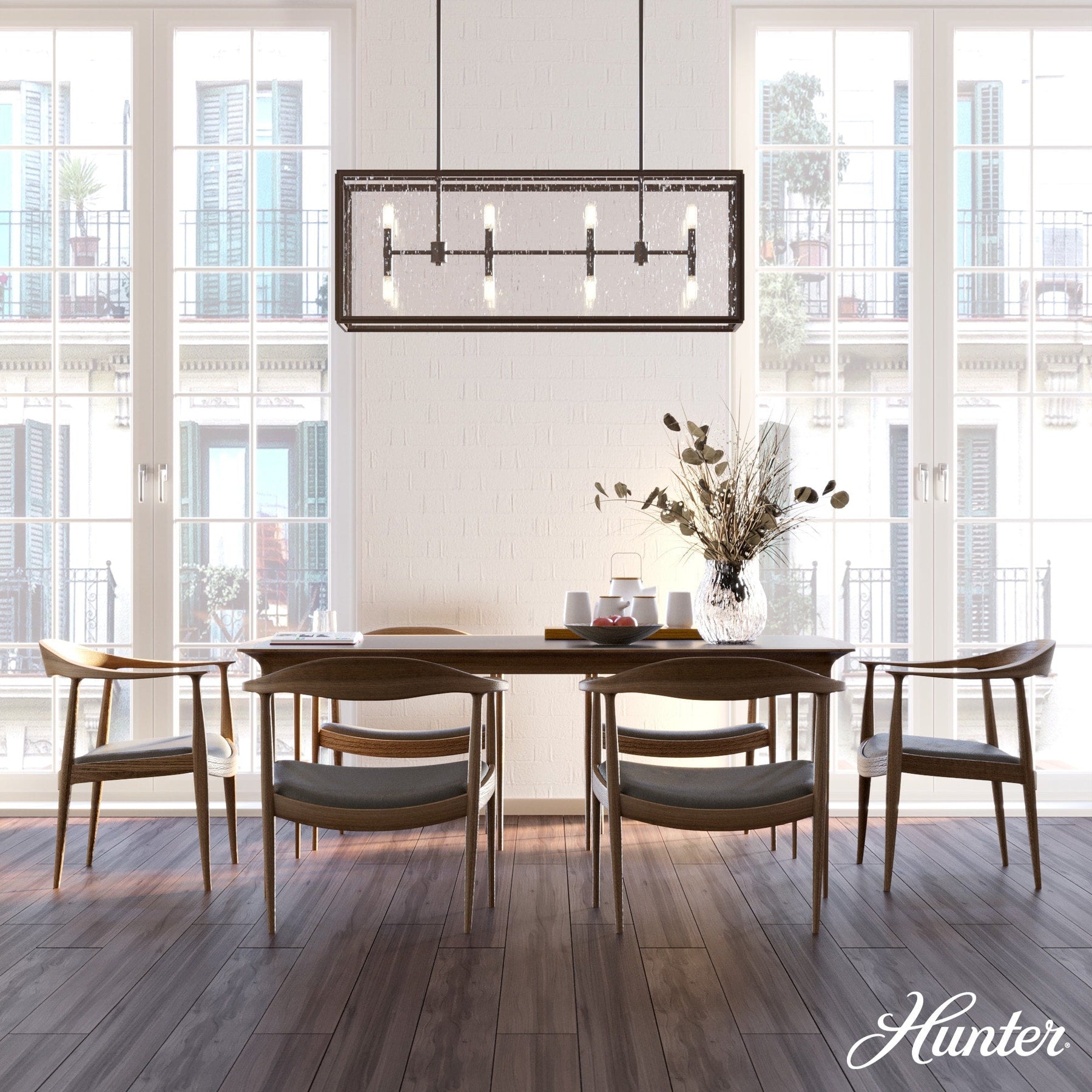 Illuminate your space with the striking Felippe 8-Light Chandelier, featuring a contemporary matte copper finish and sparkling clear seeded glass shades. Built with precision by Hunter, this chandelier merges modern elegance and refined craftsmanship, perfect for dining areas, living rooms, and kitchens.