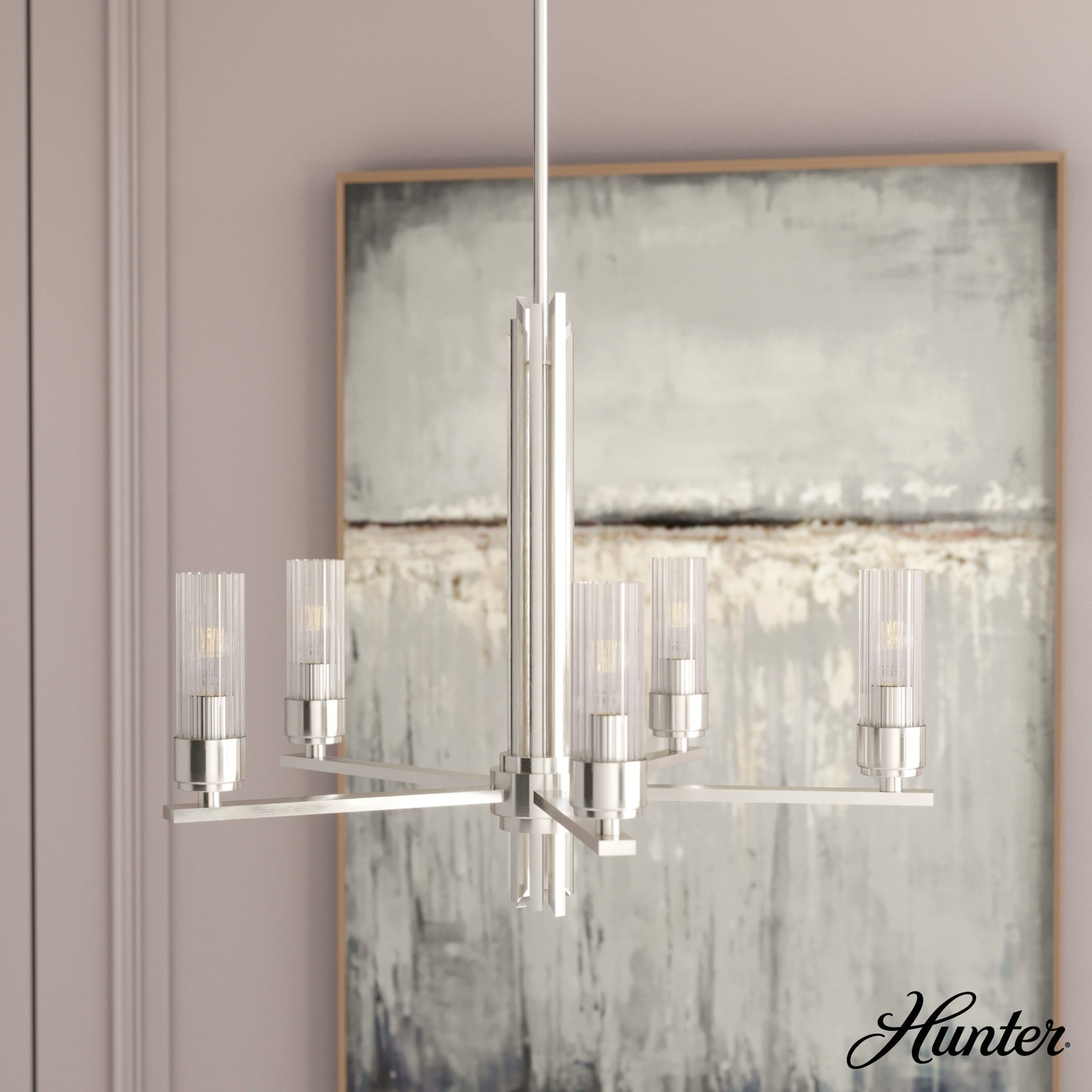 Illuminate your home with modern elegance—add the Hunter Gatz 5-Light Chandelier to your cart today and transform your space effortlessly.