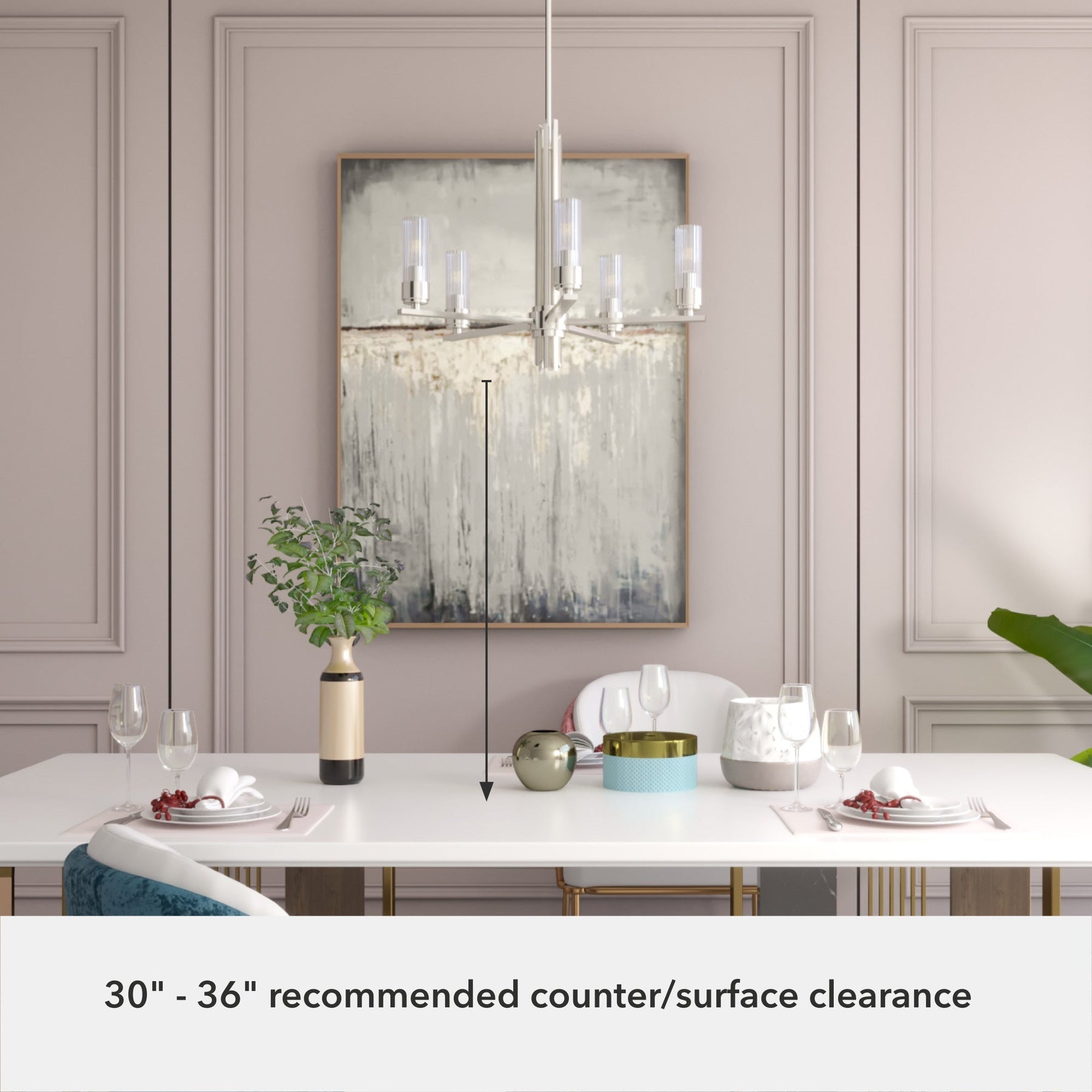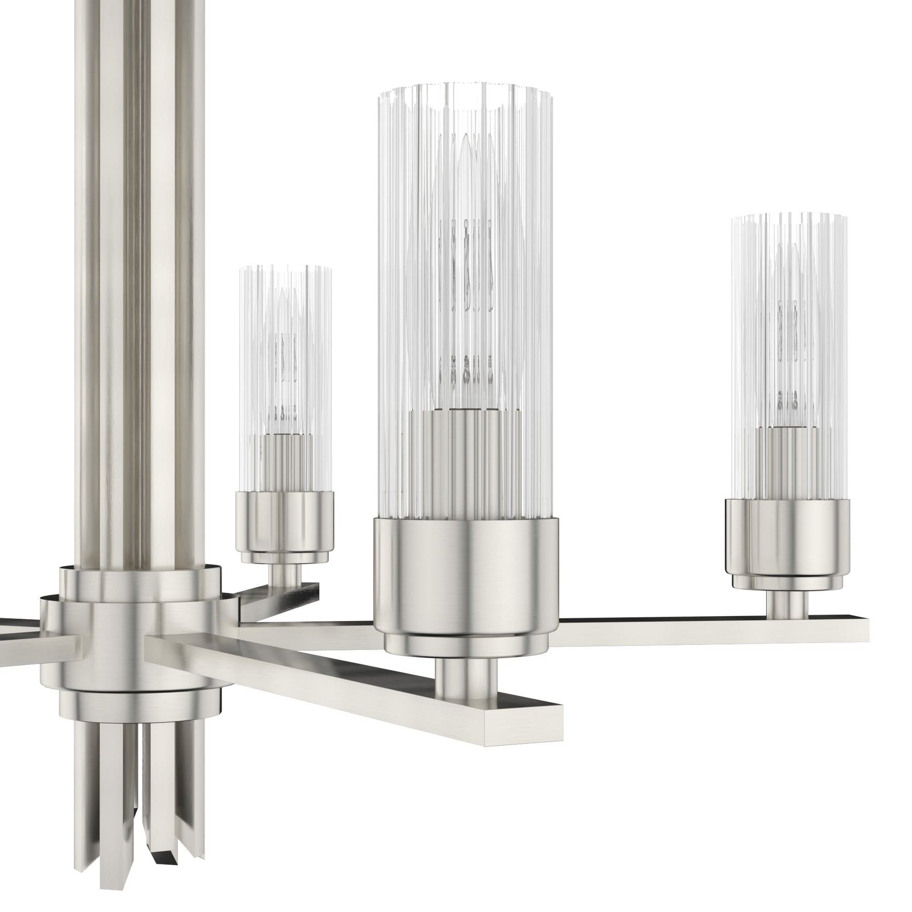 Dramatize your interior ambiance with the Gatz 5-Light Chandelier—a captivating centerpiece that stunningly melds modern flair with luxurious sophistication. The brushed nickel finish captivates with polished subtlety, while ribbed glass shades craft a shimmering cascade of light, transforming your room into a chic retreat. Place it above a dining table to enrich communal moments or in a lounge area to harmonize contemporary décor. Envision this chandelier not just as lighting, but as an essential art piece in the narrative of luxury living.