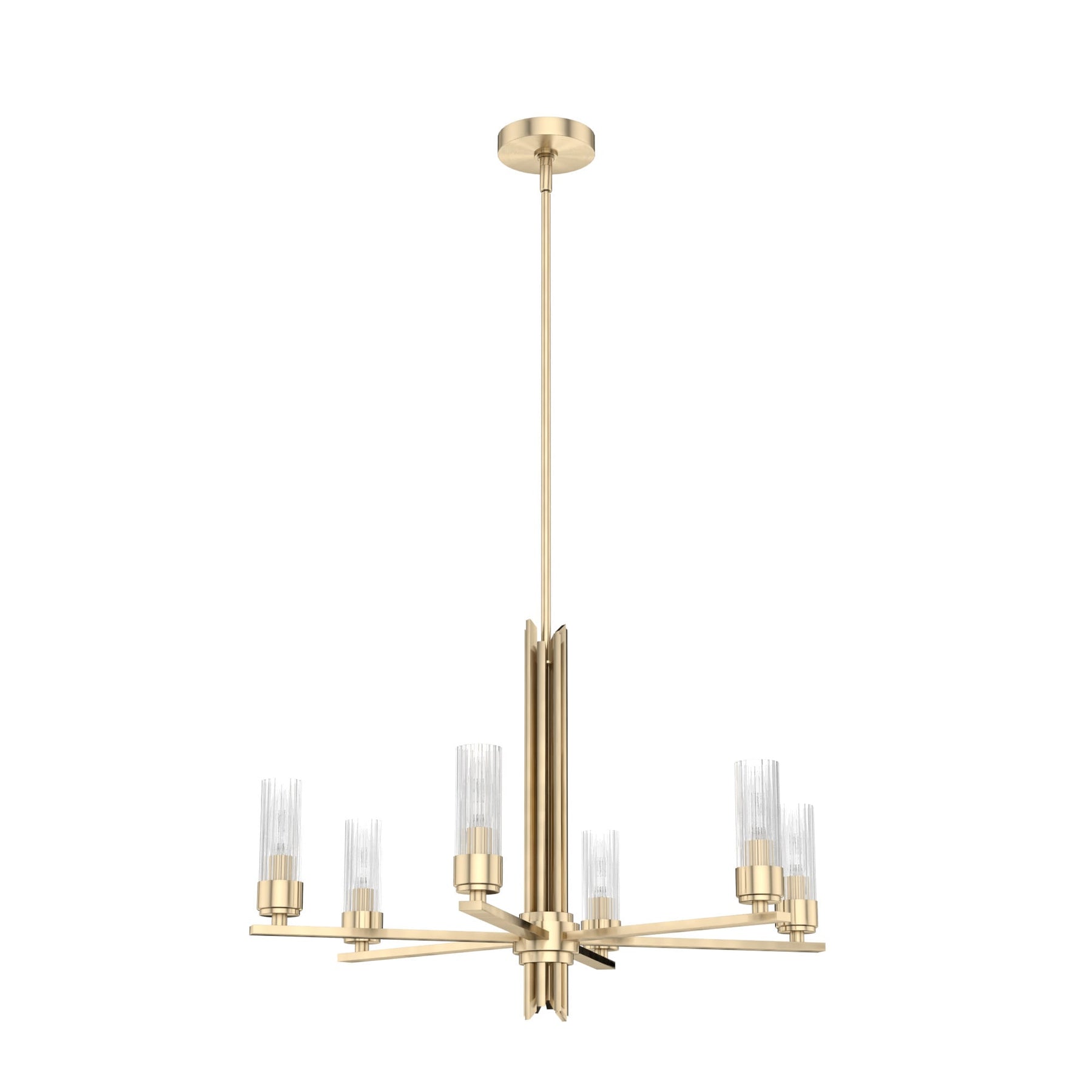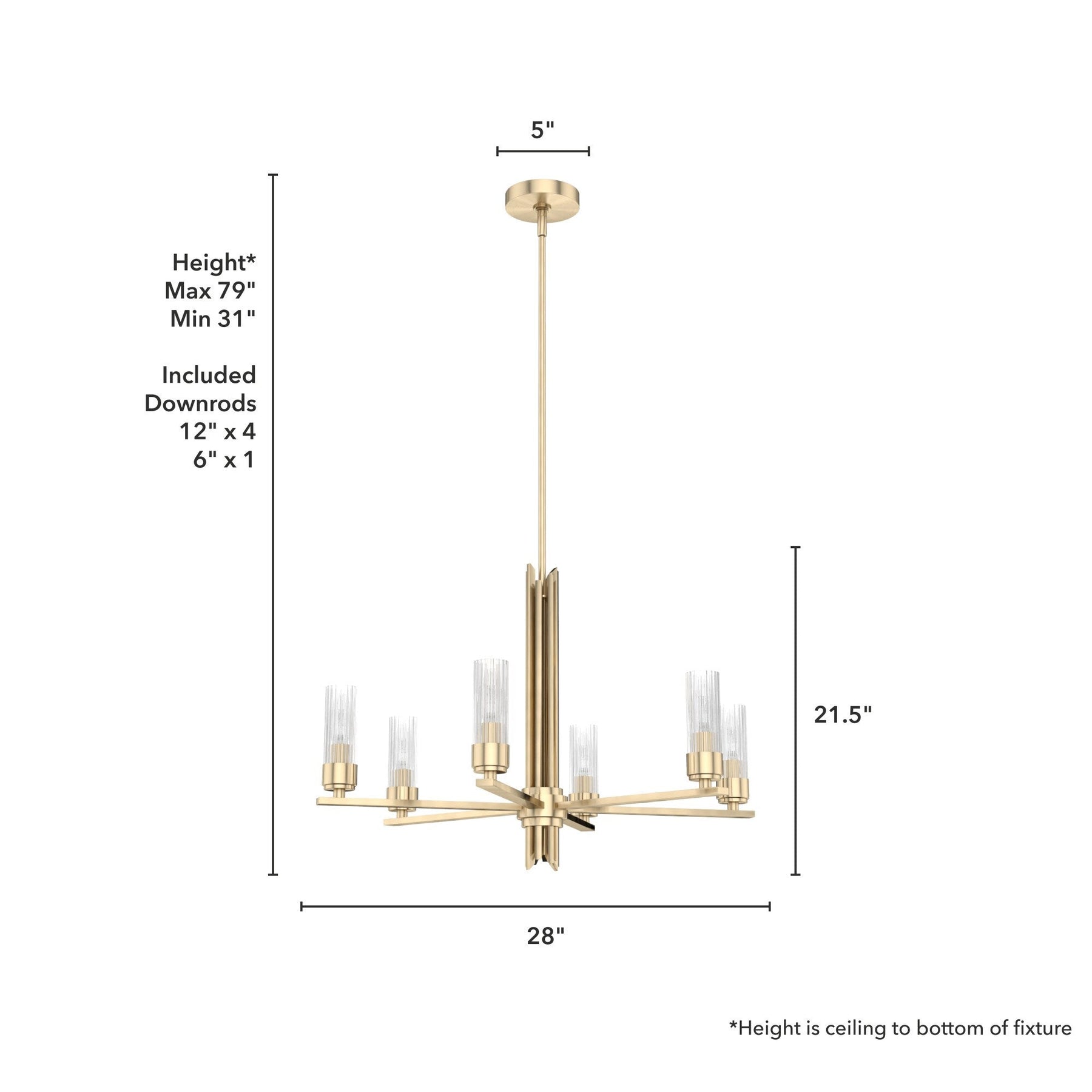 Elevate your space with the Hunter Gatz 6-Light Satin Gold LED Chandelier, a perfect fusion of modern elegance and timeless craftsmanship. Its satin gold finish and premium ribbed glass shade offer a luxurious touch to any kitchen, dining room, or living area. Easy to install and adjust, this chandelier gives you flexibility without compromising on style.