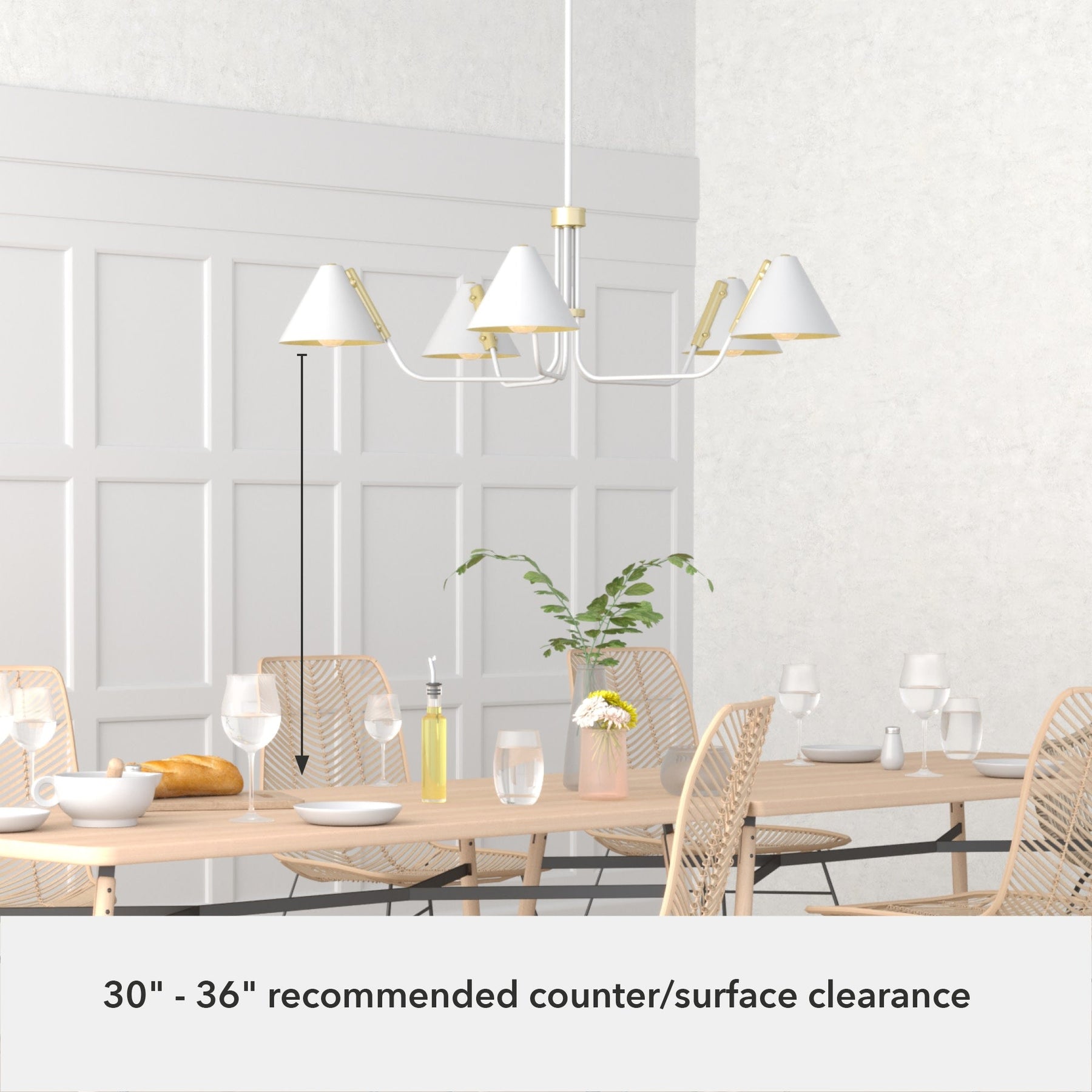 Illuminate your space with the Hunter Grove Isle 5-Light LED Chandelier, featuring a sleek matte white finish and a captivating modern design. Engineered for durability with formed steel and aluminum, this chandelier offers adjustable hanging lengths from 20.5" to 68.5", perfect for various room heights. Ideal for DIY enthusiasts, it requires minimal assembly and electrical work, transforming kitchens, dining areas, and living rooms into sophisticated focal points.