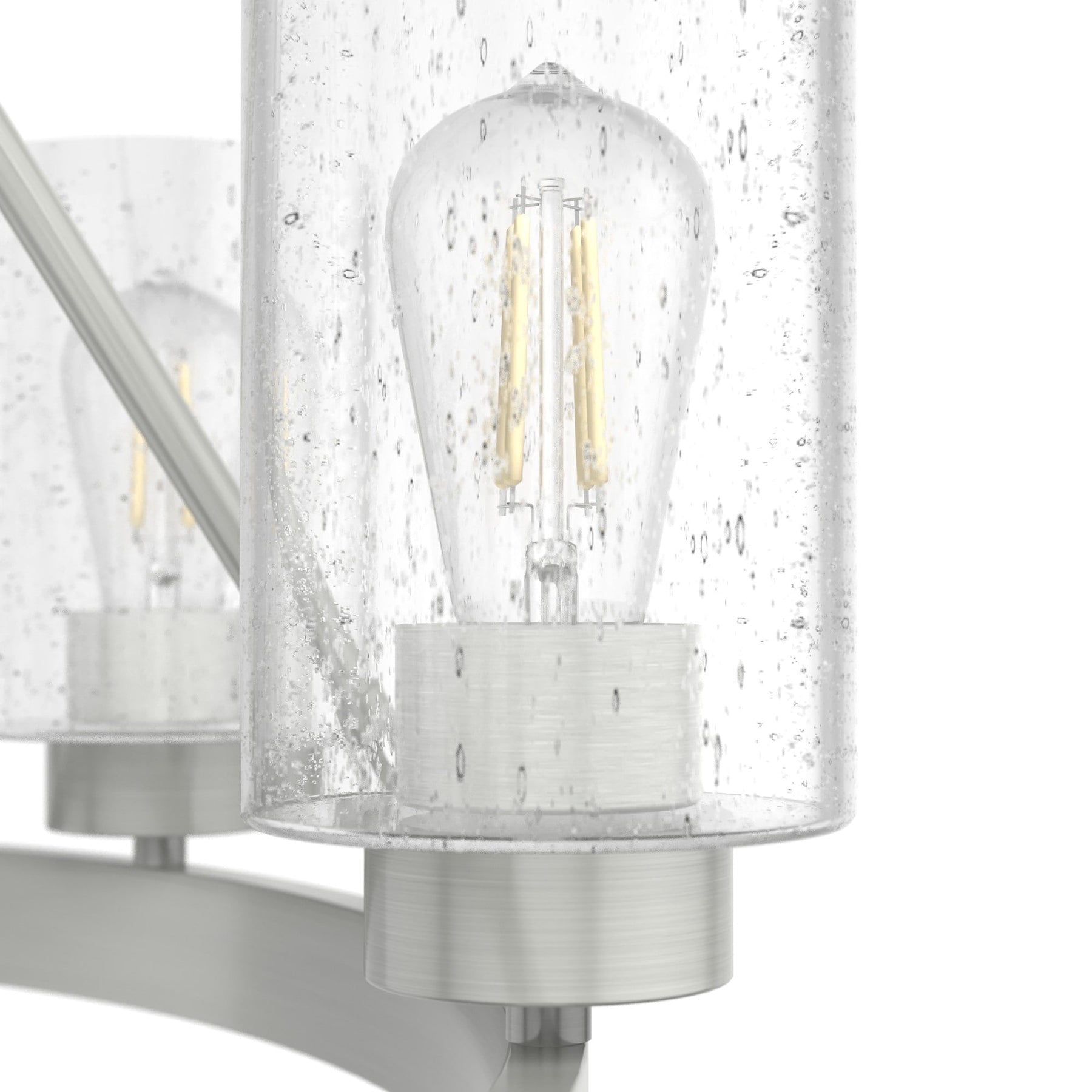 • Premium Materials: Constructed from formed steel and aluminum for enhanced durability, adorned with a brushed nickel finish and clear seeded glass shades.