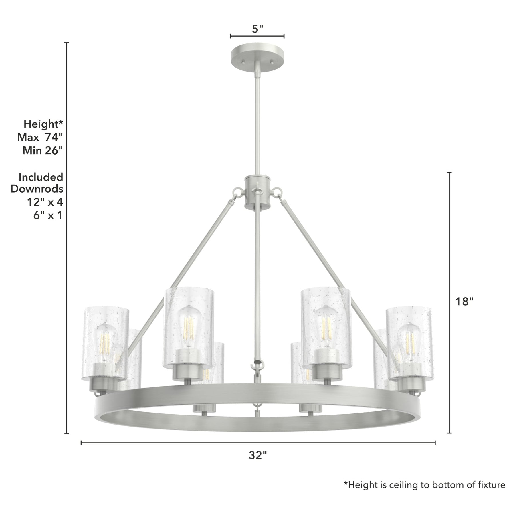 • Adjustable Hanging: Comes with one 6-inch and four 12-inch downrods for an adaptable hanging length from 30.75 to 78.75 inches.