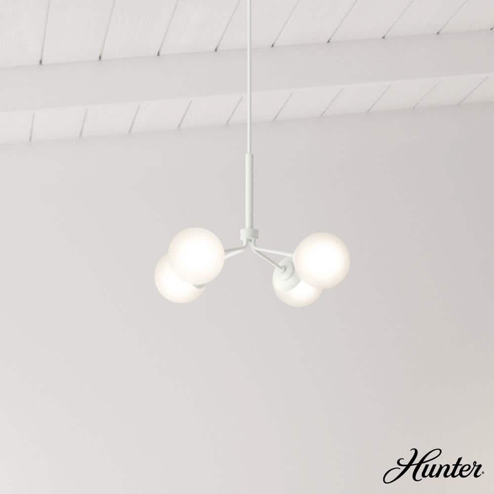 The Hepburn 4 Light Chandelier by Hunter captures the elegance of the 1920s with a modern twist. Featuring a striking matte white finish and cased white globe shades, this chandelier is perfect for adding a sophisticated touch to any kitchen, dining, or living space.
