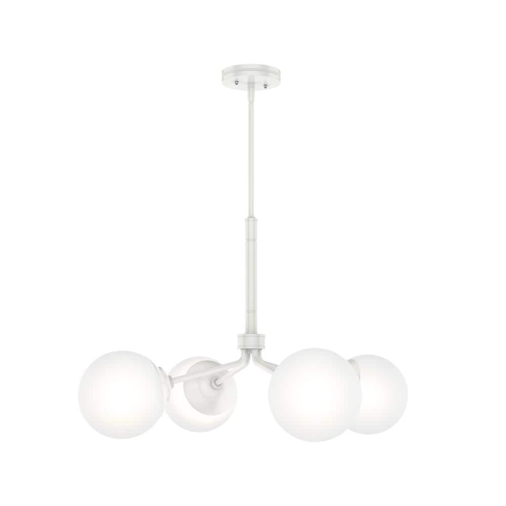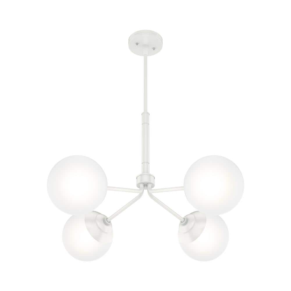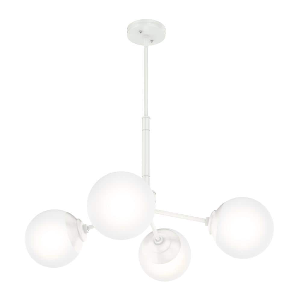 Envision the Hepburn 4 Light Chandelier as your room's central jewel, radiating elegance with its luminous white globe shades and confident matte white finish. This chandelier captivates with its blend of 1920s charm and modern sophistication, offering a stunning visual that transforms any space from ordinary to extraordinary. Style it over a dining table or in a grand foyer to create an inviting allure that speaks of luxurious living. With its impeccable design and understated opulence, this piece becomes an essential element for anyone seeking timeless elegance and superior style.