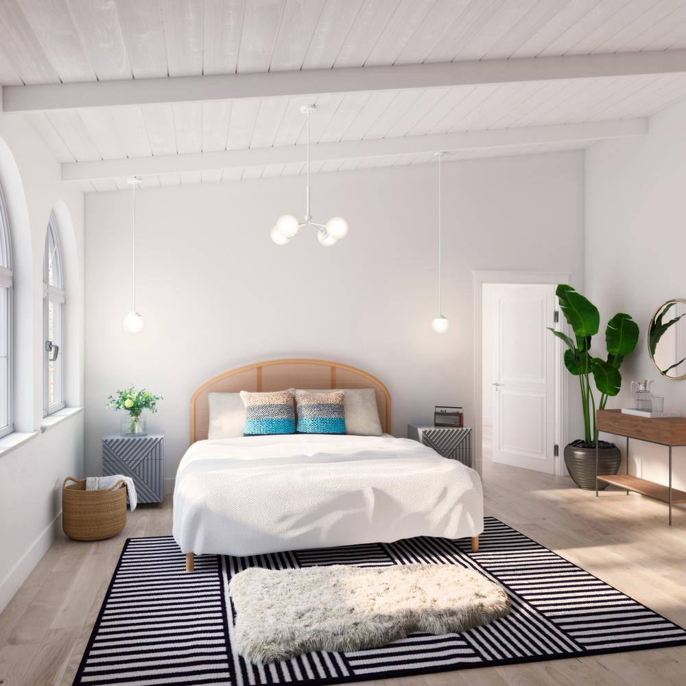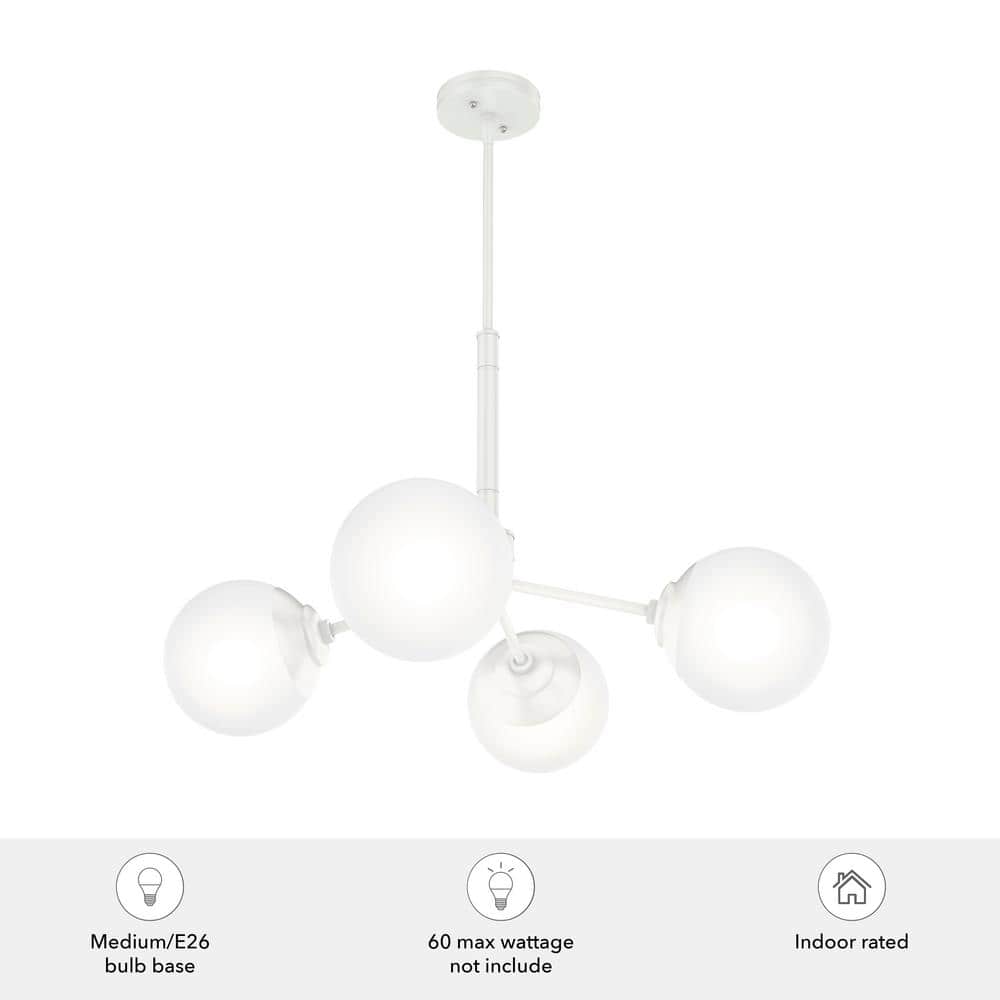 - Modern Design: Features a sleek matte white finish with cased white globe shades, embodying a timeless elegance.