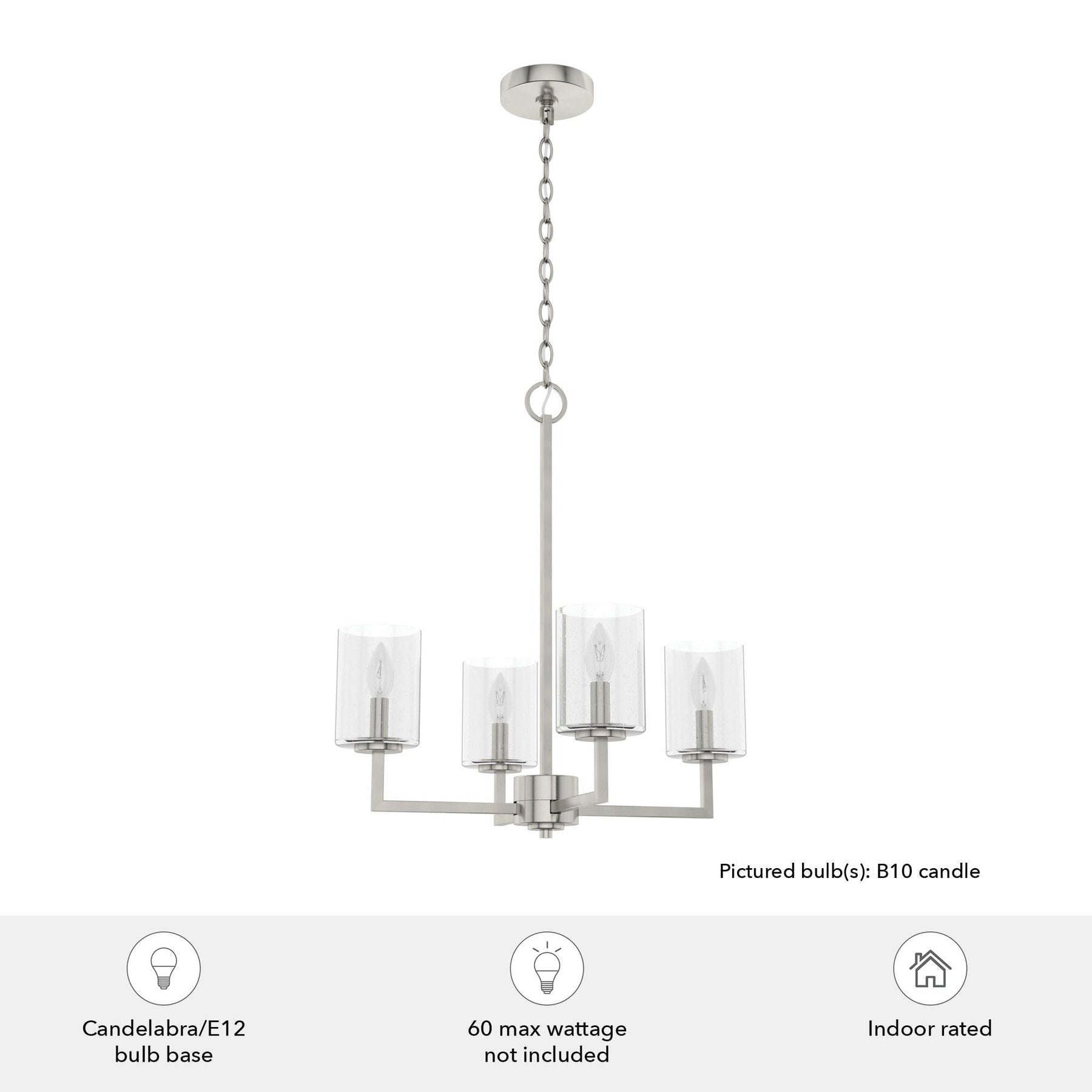 Illuminate your space with the Kerrison 4-Light LED Chandelier from Hunter, featuring a stylish brushed nickel finish and modern seeded glass. Designed for kitchens, living rooms, and dining areas, this durable chandelier combines elegance and functionality, making it perfect for any home improvement project.