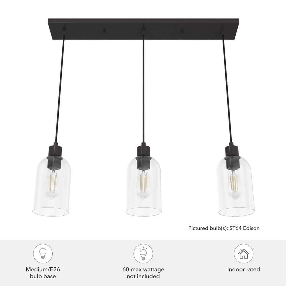 Hunter Lochemeade 3 Light Noble Bronze Shaded Chandelier with Clear Seeded Glass Shades Kitchen Light