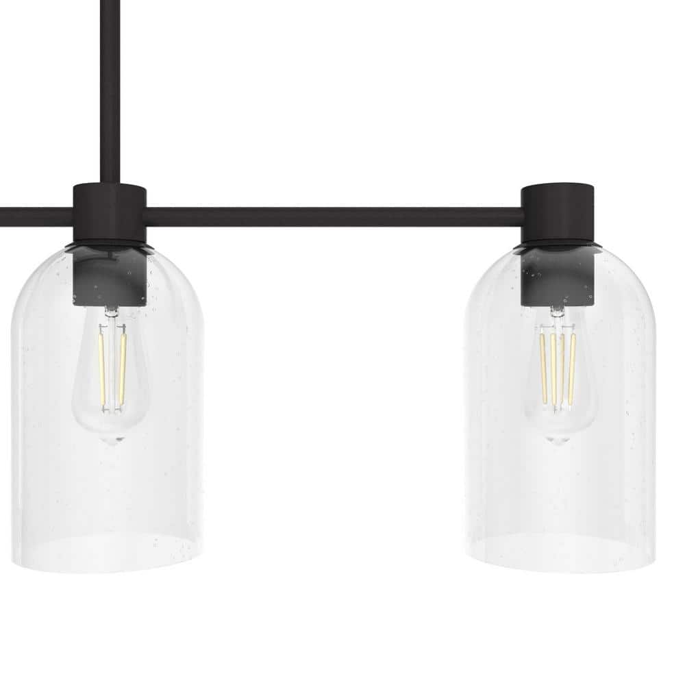 Hunter Lochemeade 4 Light Noble Bronze Linear Chandelier with Clear Seeded Glass Shades Kitchen Light