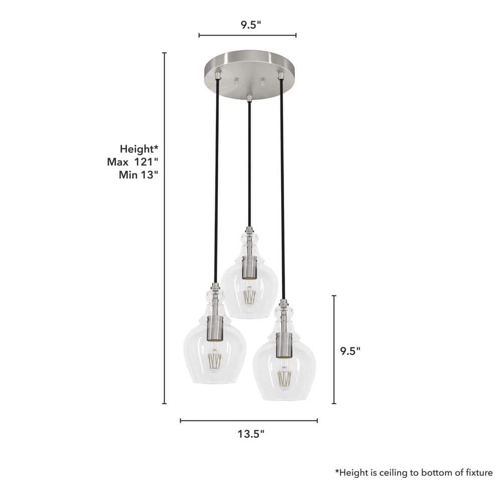 - Premium Design: Brushed nickel finish with clear glass shades for a modern yet timeless look.