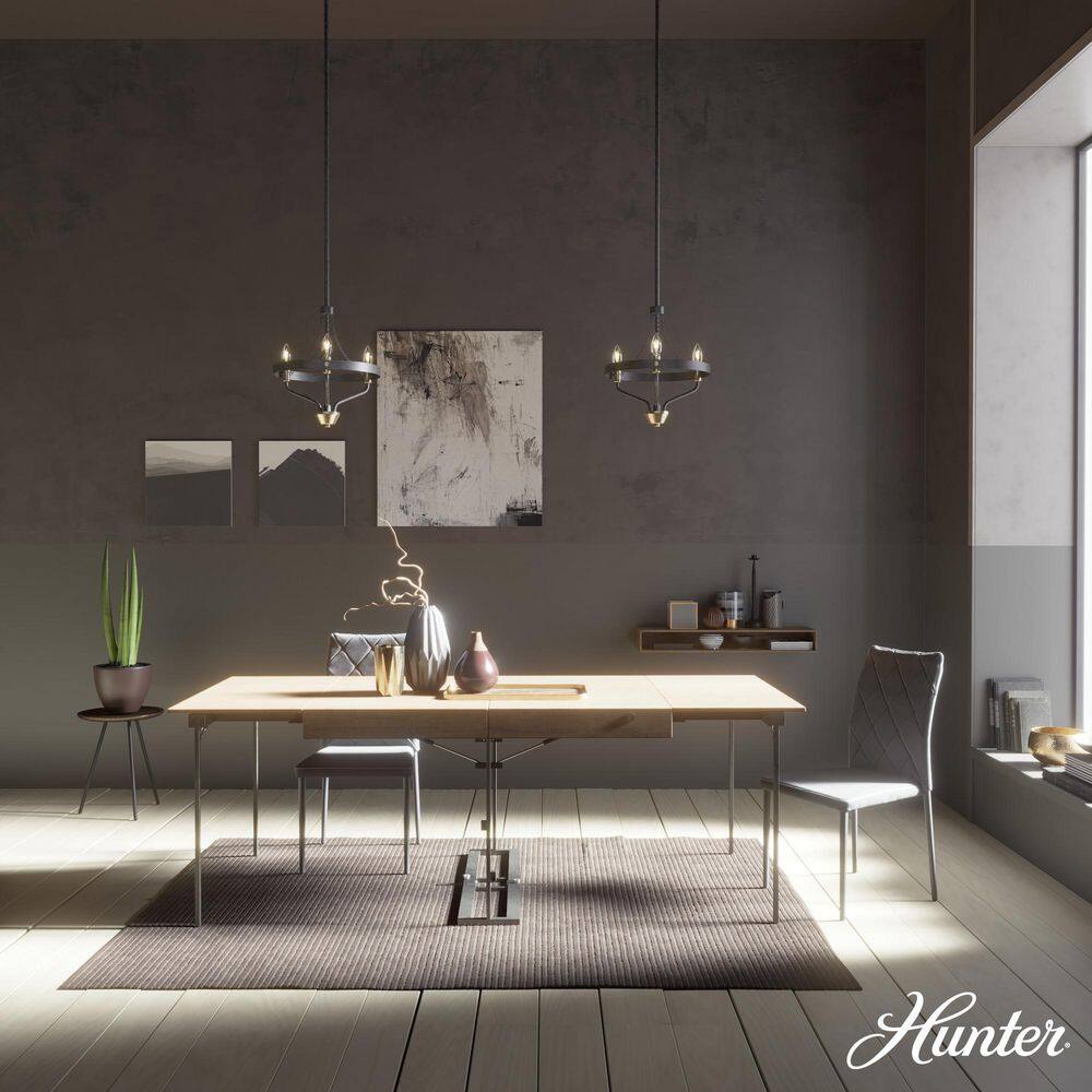 Illuminate your world with the Hunter Merlin Chandelier's rustic elegance—order now to experience timeless beauty and functional charm in your home.